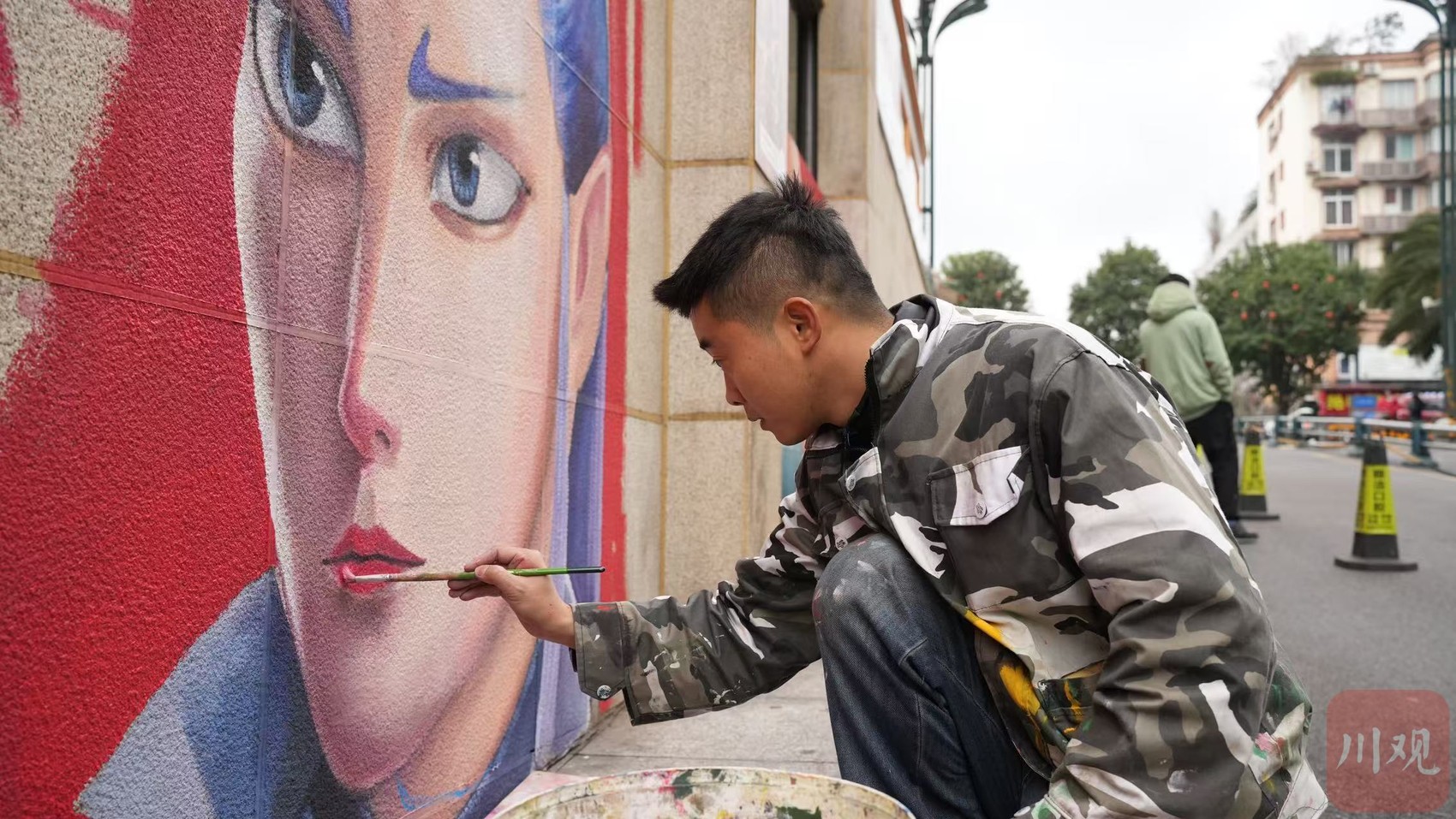 胡龙介绍,目前还有一块稍微大些的墙面正在加紧绘制,将呈现成年后的哪吒形象以及“宜宾”两个大字,“在我们心中,哪吒就是宜宾的‘娃’,希望通过墙绘吸引更多人跟着哪吒游宜宾”。