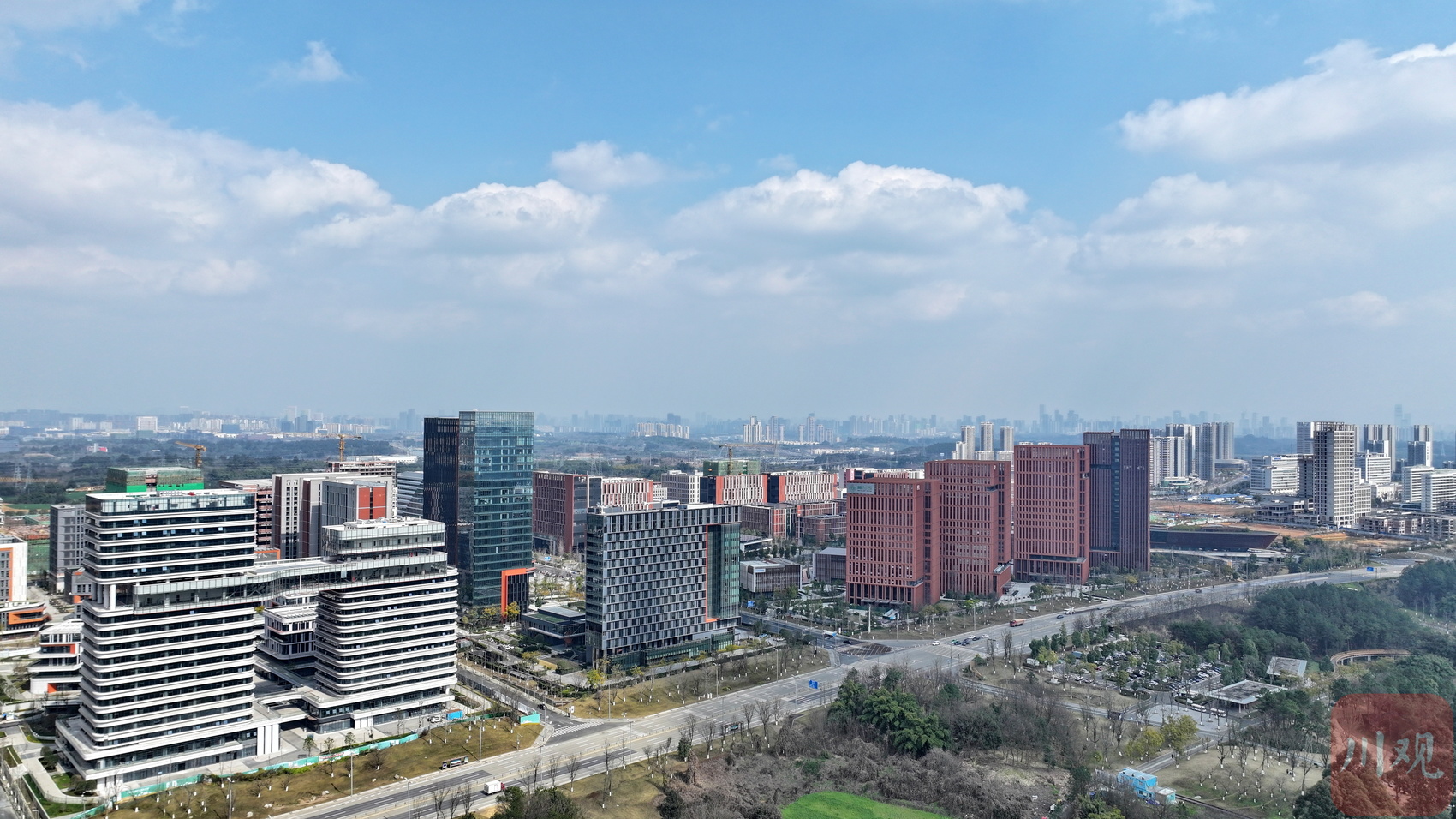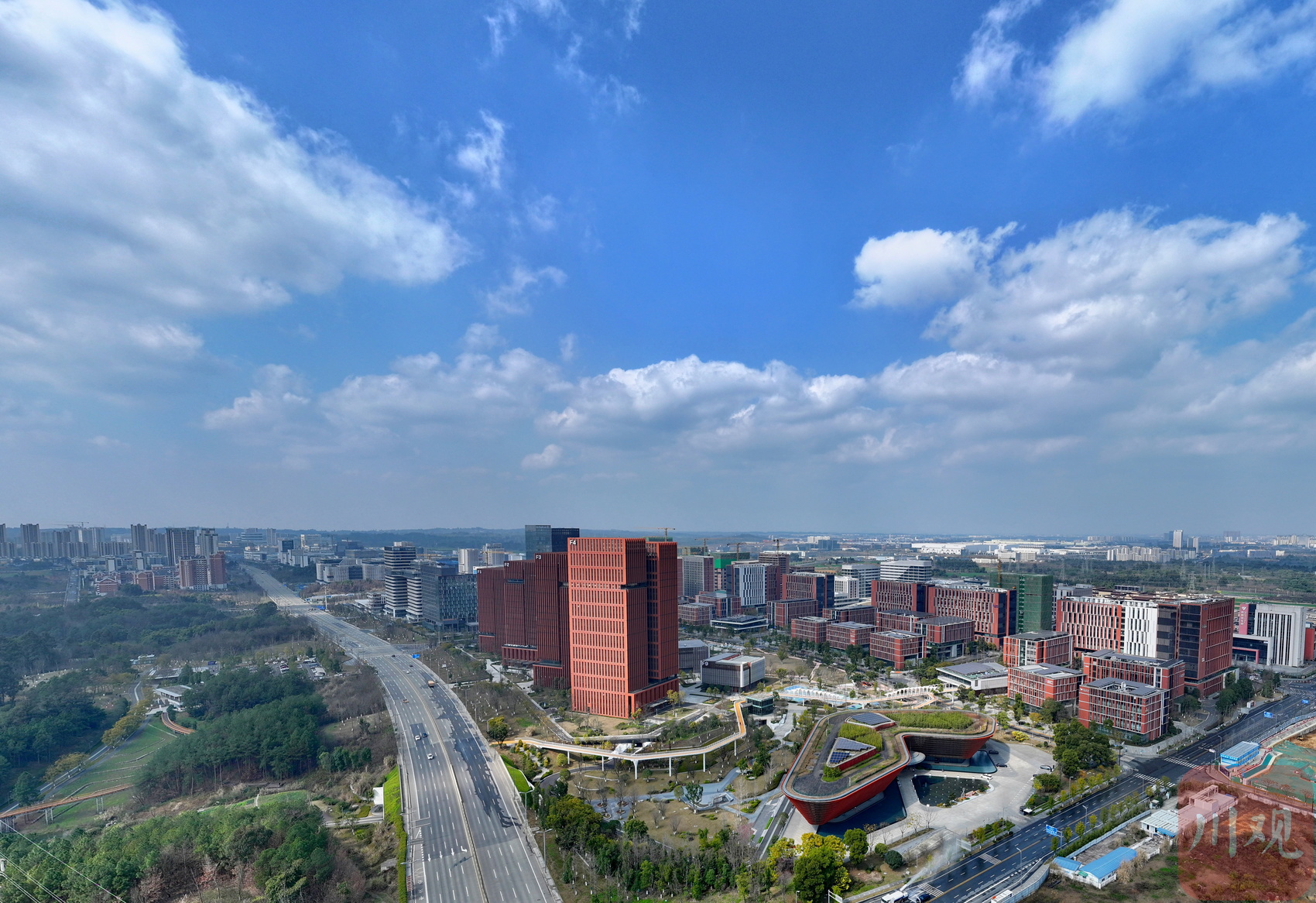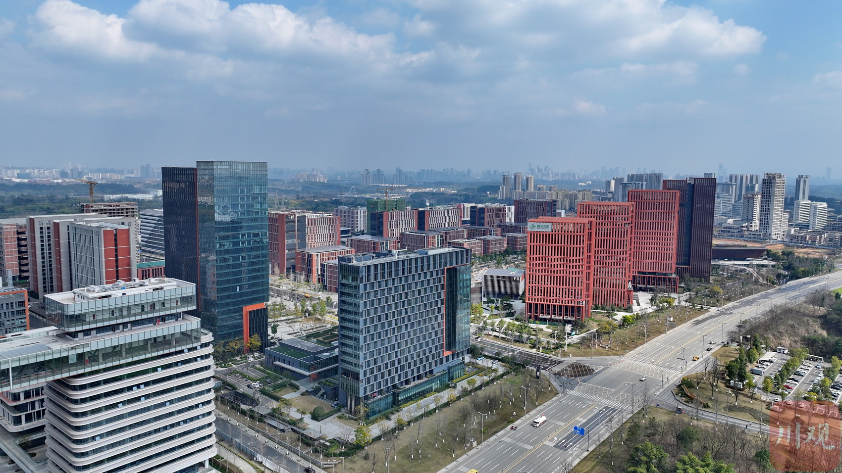 2月26日,记者沿成都剑南大道一路向南,抵达位于成都市双流区永安镇的成都天府国际生物城,只见蓝天白云下,成都天府国际生物城里的建筑以橙色和红色为主色调,一栋栋建筑线条简洁流畅,展现出一种强烈的视觉冲击力。