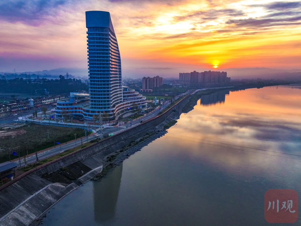 2月26日,雅安雨城区在连日的降雨后迎来了难得的好天气。青衣江畔,随着太阳缓缓升起,如同哪吒挥动混天绫时那般光芒万丈,整个区域被染上了一层如油画般的橘红色光辉。