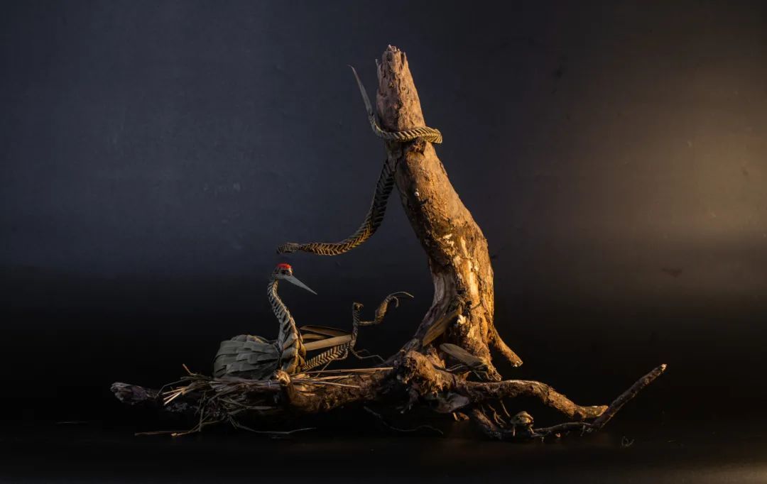 天福棕编传统制作技艺主要流行于蓬溪县天福镇周边等地,是具有当地特色的民间手工艺。天福棕编以棕榈树叶子为主要原料,每年4月,天福镇棕编手艺人便将采来的棕叶按纹路折叠,扎紧后放入开水锅里煮,煮至由青转黄成熟为止,然后日晒夜露,完全干透、变白,这样制作后不变形,可存放十余年。这种棕编往往采用结体穿插扎系的方法来构成形象,主要题材以各种小动物为主。因手工制作过程耗时长,作品不可量产,不可复制,每一个作品都有独一无二的韵味。