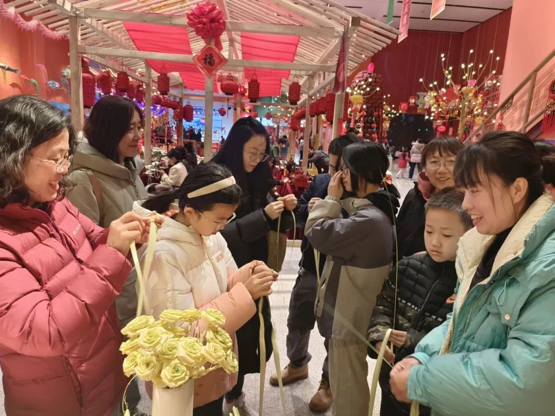 活动现场,遂宁天福棕编市级代表传承人何礼清老师使用新鲜粽叶编织成一朵朵玫瑰,引得观众纷纷驻足欣赏,惊叹传统技艺的神奇。何老师现场展示教学简单棕编技艺,观众一步一随,亲手体验棕编魅力,成为全场焦点。