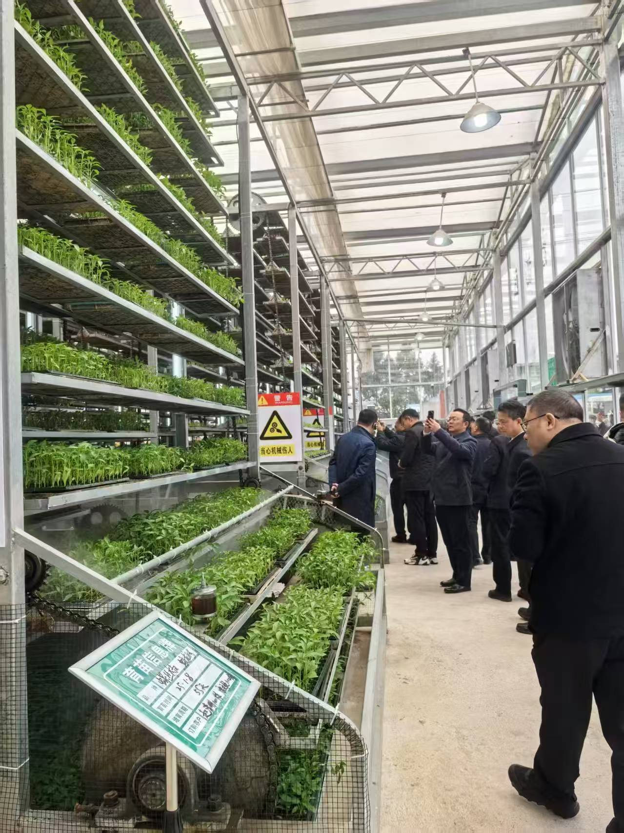 与会人员关注常丰农事服务中心的智能化育秧中心投运情况。
