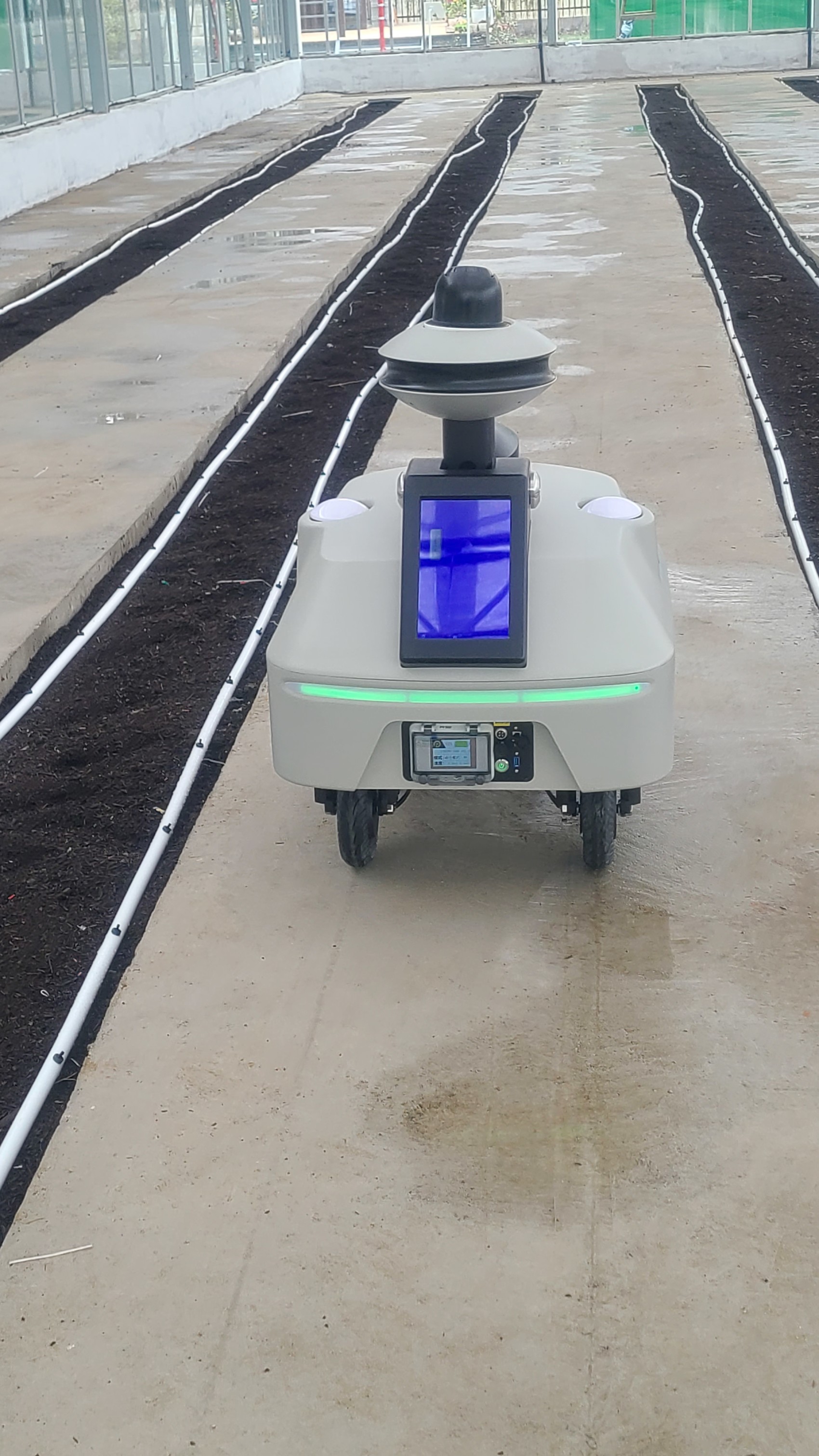 “鹿舟”可以在哪些地面跑?阳帆说,除了在棚里巡检,“鹿舟”还可以在户外大田里巡检,路面平整,如高标准农田,可以跑四轮,“因为它底盘比较高,通过性还不错,并且机体还可以抬高一点,一般小坑难不住它。如果遇到土路高低起伏大,还可以换成履带,一样可以巡检。”