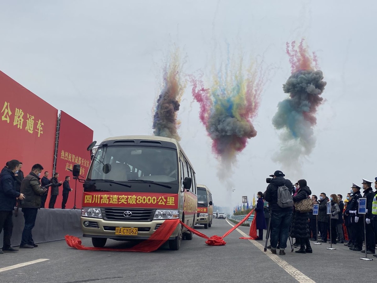 12月31日上午,成都至宜宾高速公路(以下简称成宜高速)通车活动在清风枢纽互通举行,项目将于12月31日24时正式并网运营,标志着全省高速公路通车运营里程突破8000公里。