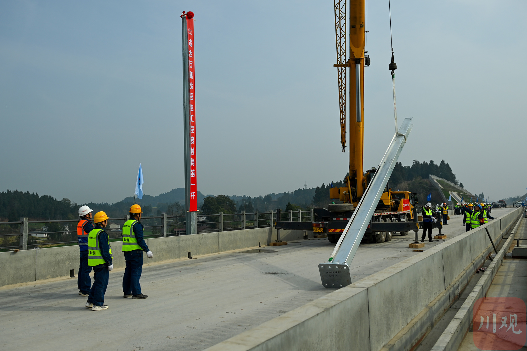 “开始!”2月28日10时许,随着一声令下,在位于资阳市雁江区的成都至达州至万州高速铁路(以下简称“成达万高铁”)顺家村大桥上,机器轰鸣,中国铁建电气化局建设者操控着吊装设备,将一根高9.2米、近1吨的银灰色接触网支柱精准安装到位。
