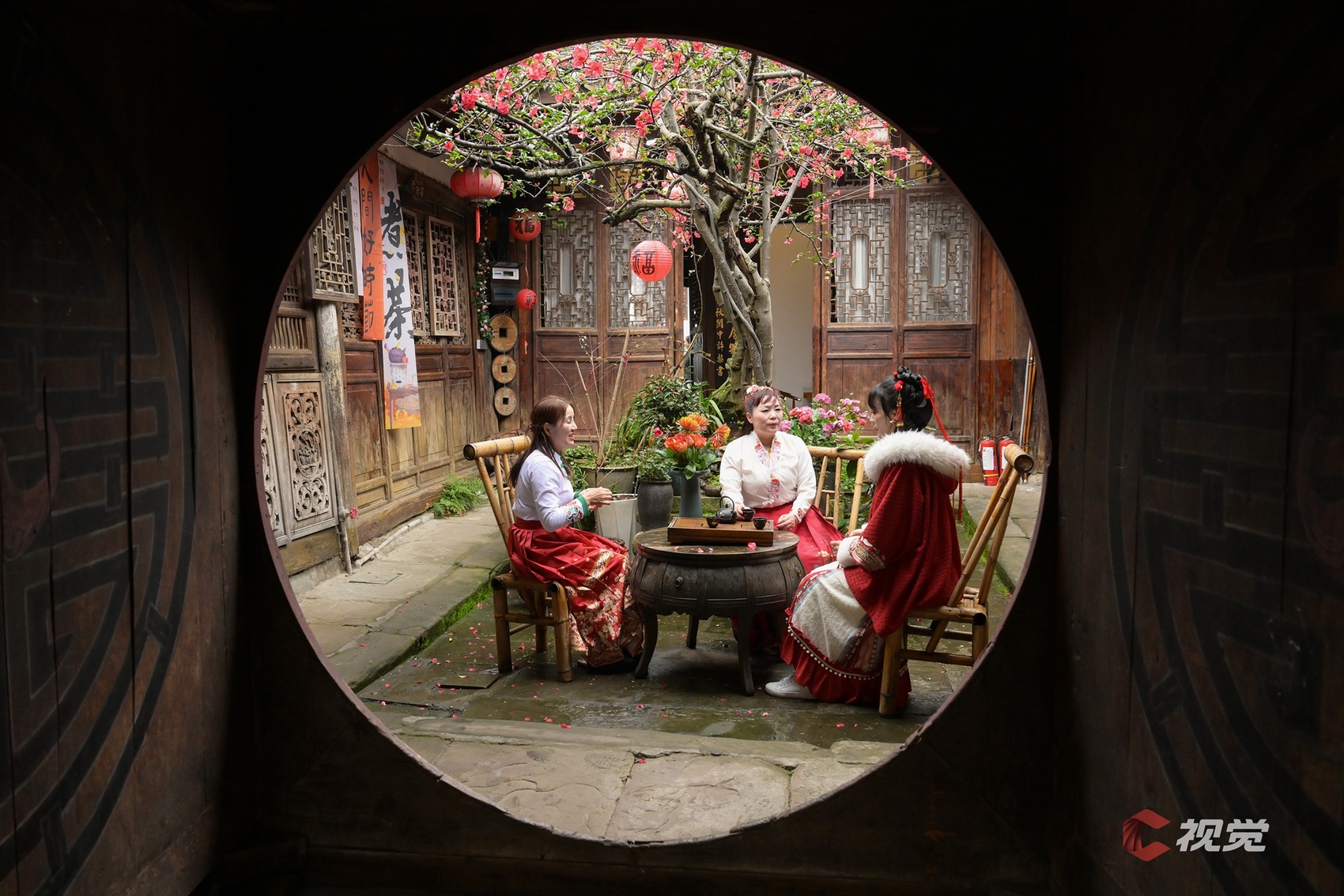 作为获得了“中国民间文艺家协会”认可的“中国春节发源地”,阆中古城开春后依旧热度不减,身着汉服的小姐姐们漫步于古院之中,于花树下翩翩起舞,唯美浪漫,静雅悠闲。