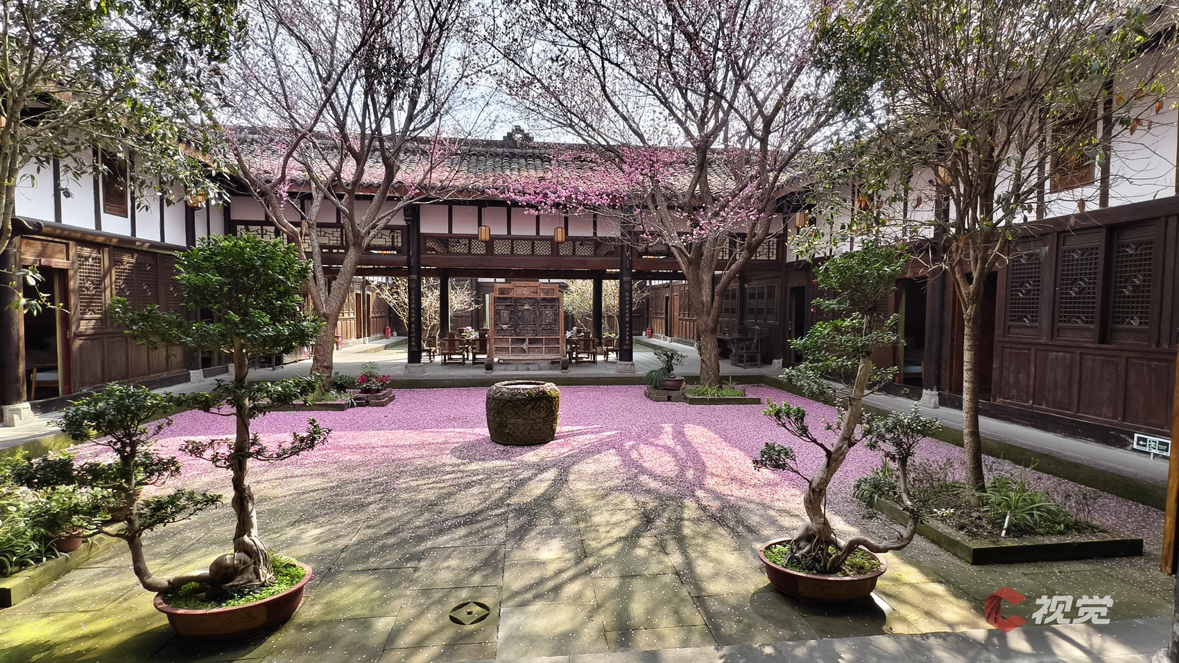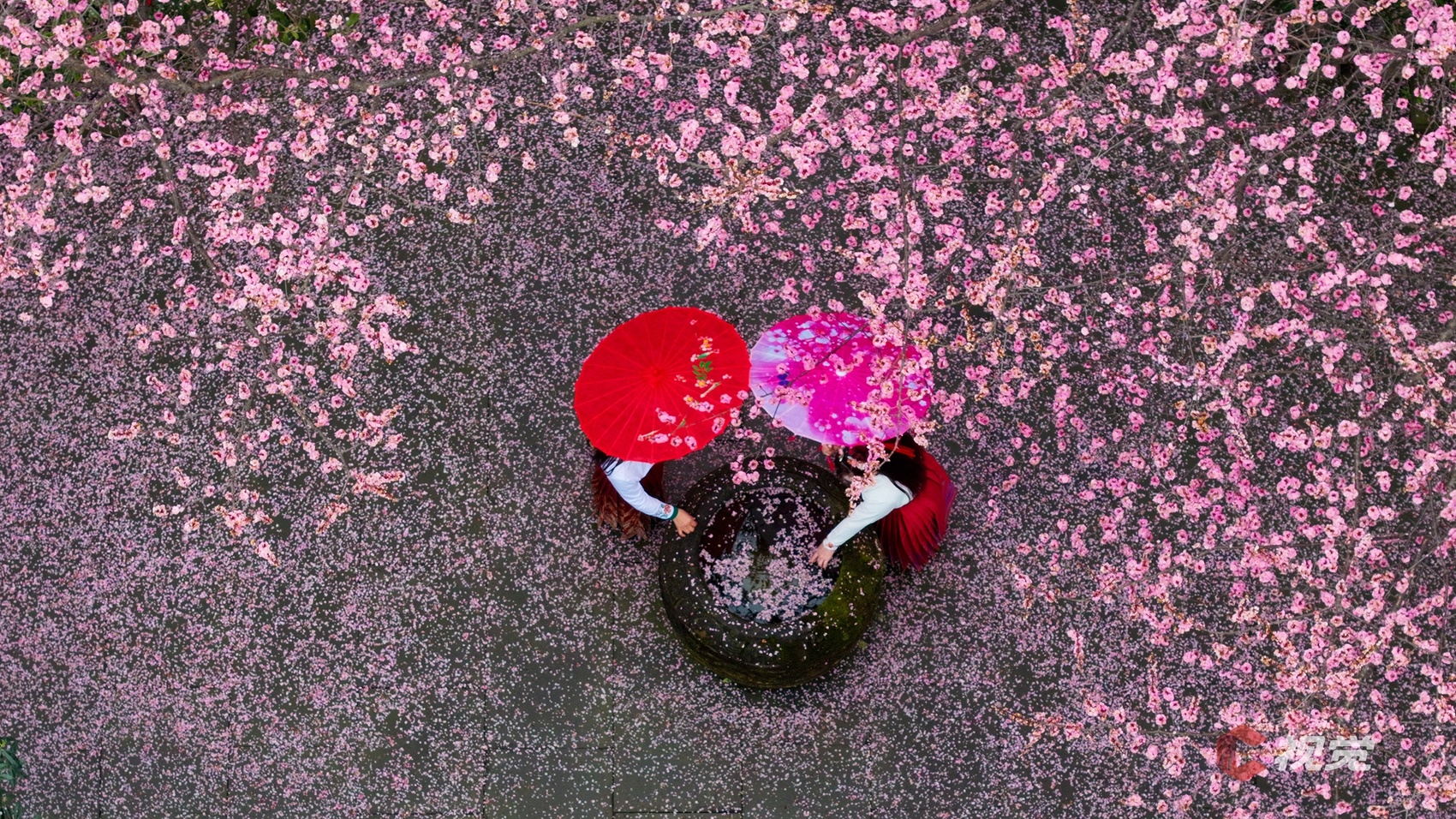 2月26日,古城院落里红梅飘落铺满青石板地面,构成了一幅“零落成泥碾作尘只有香如故”的春日美景。C视觉 张晓东 摄