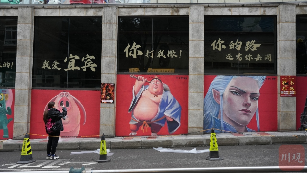从影院大荧幕燃到街头,“哪吒”主题墙绘在宜宾走红。近日,在宜宾莱茵春天商场附近,上新了哪吒主题墙绘。13幅动画人物跃然墙面,再现《哪吒2》中的经典场景与人物。百米墙绘成为一道亮丽的风景,吸引了诸多市民和小影迷前来拍照、打卡留念。