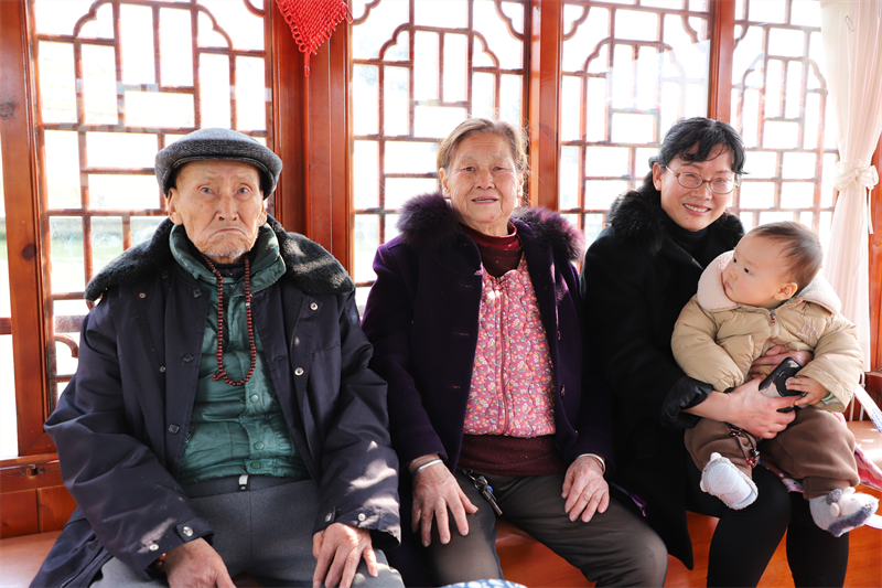 吴远和与家人一起乘船
