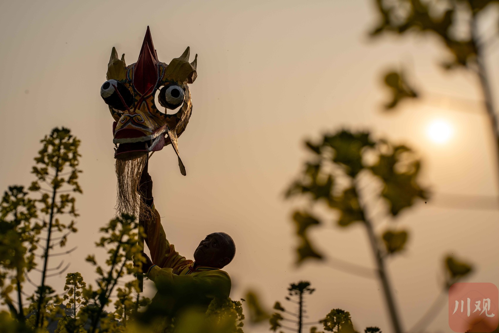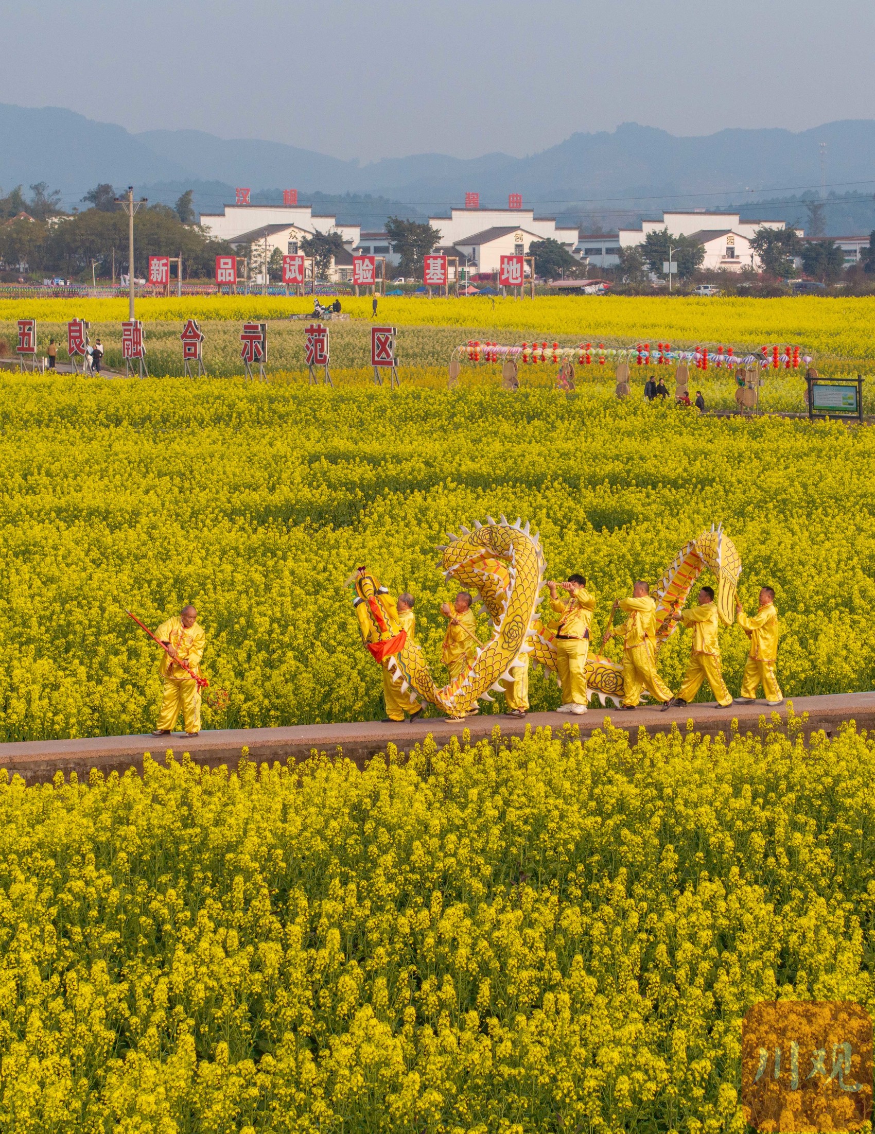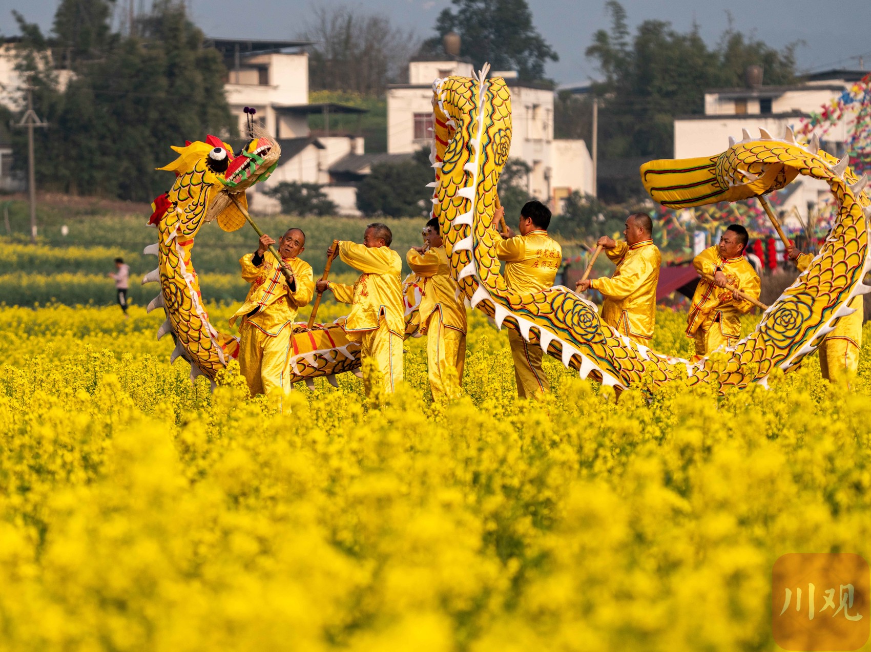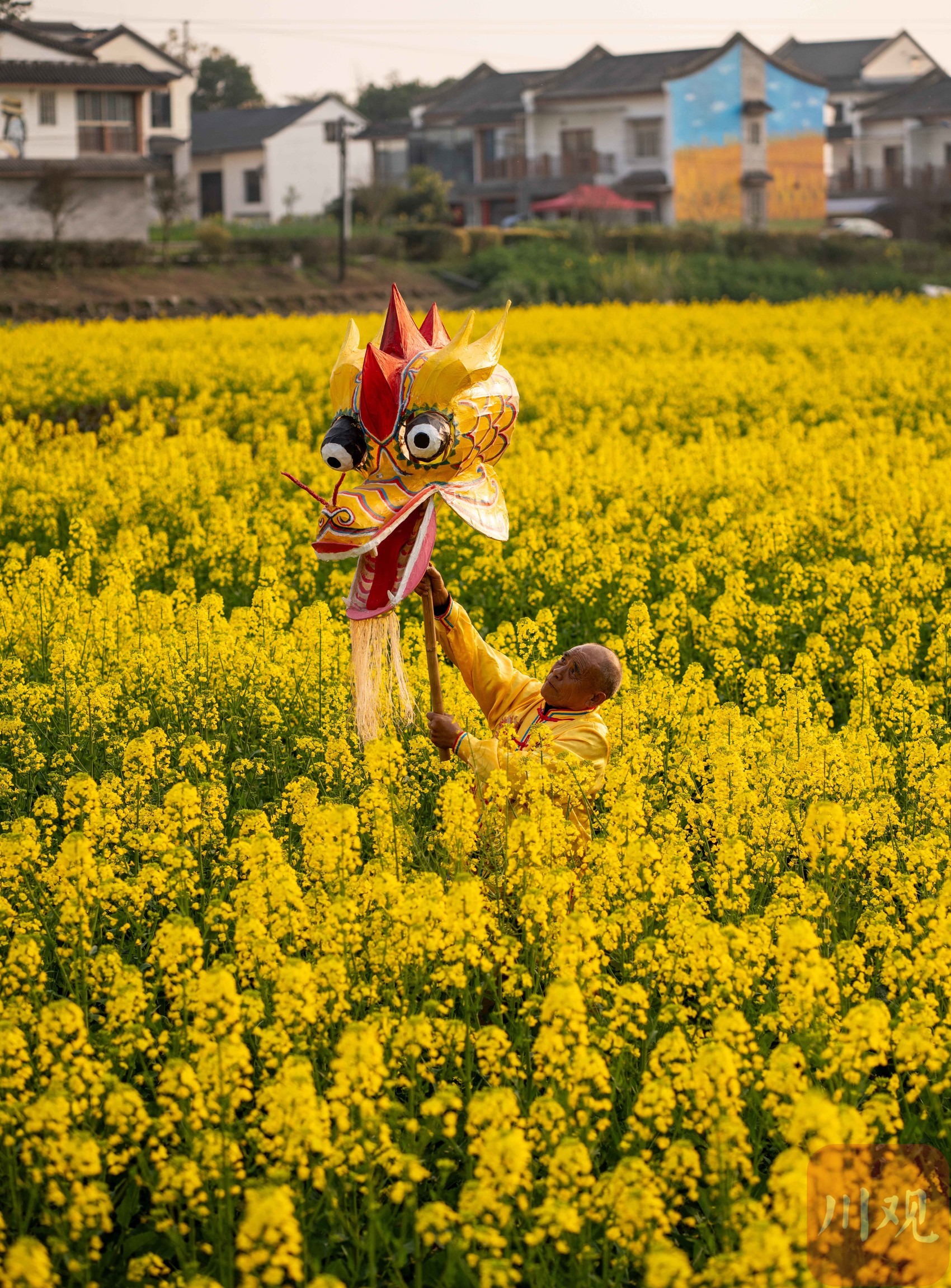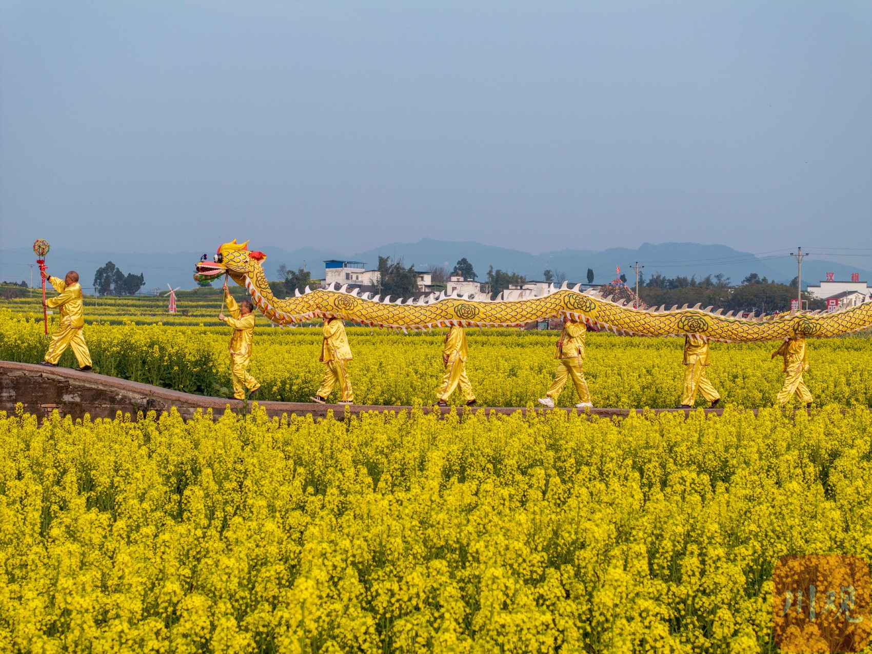 2月28日,泸州市泸县油菜花田里,一条金色巨龙在花海中翻腾起舞,气势磅礴,吸引了众多村民和游客驻足观看。这是方洞镇舞龙队为迎接即将到来的农历二月初二“龙抬头”传统节日,特意举行的舞龙祈丰年活动。国家级非物质文化遗产“雨坛彩龙”代表性传承人罗德书带领队员,以精湛的技艺展现了“东方活龙”的魅力。