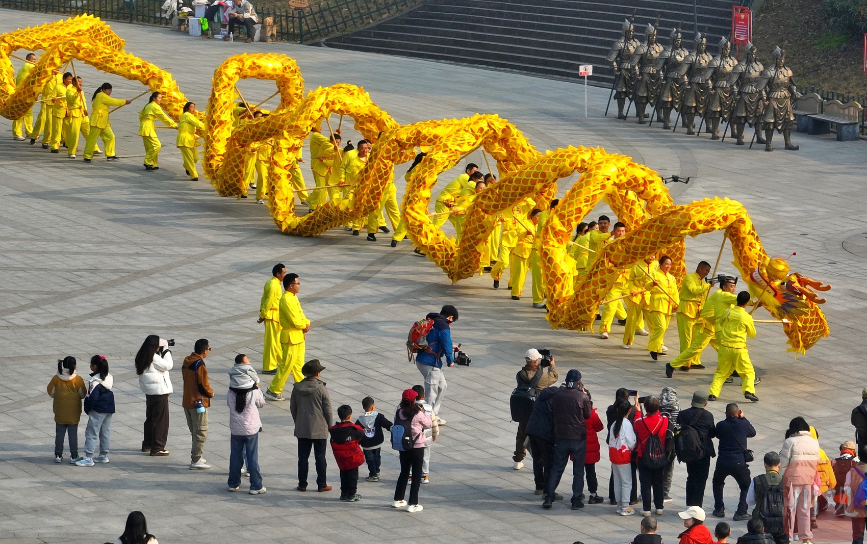 2025年3月1日,农历二月初二,成都龙泉山的金龙长城景区以非遗民俗为特色,携手洛带宝盛村的“刘家龙”,与登山游客共同开启了一场盛大的长龙巡游活动,人们共赴春之约。“二月二,龙抬头”寄托着人们对于美好生活的向往和追求。