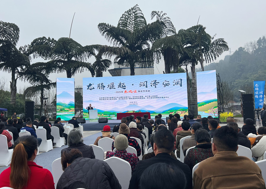 “砍杩槎,放水!”3月1日,“龙腾堰起·润泽安澜”2025年东风堰放水节活动,在夹江县青衣江畔堰源广场举行,清澈透亮的青衣江水,从东风堰主干渠奔涌而出,润泽乡野。