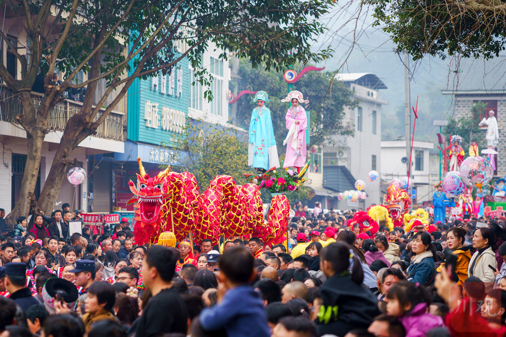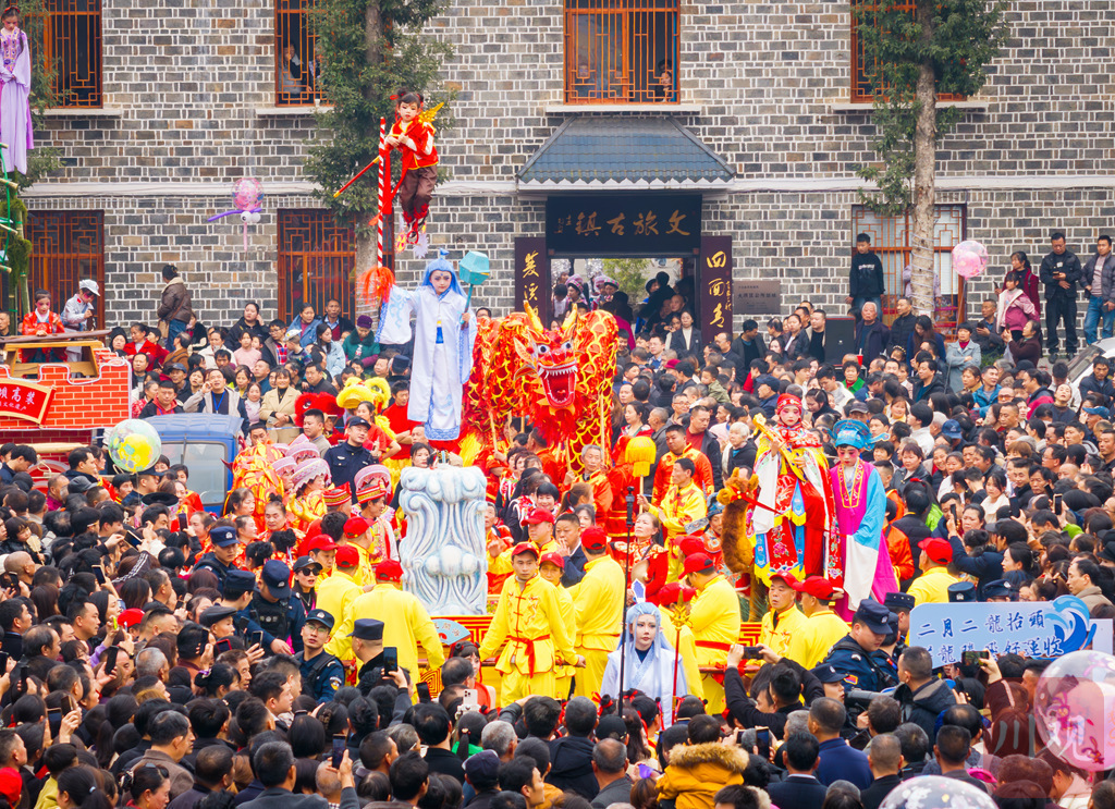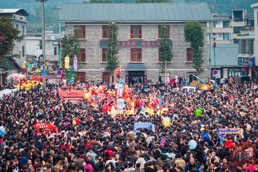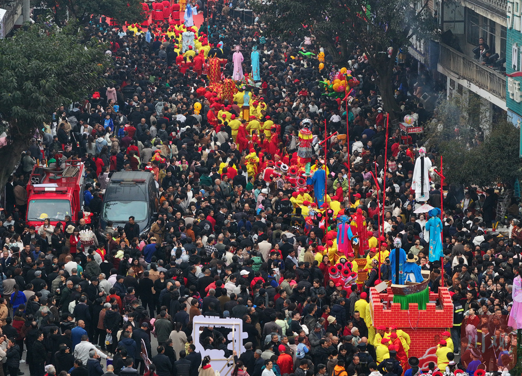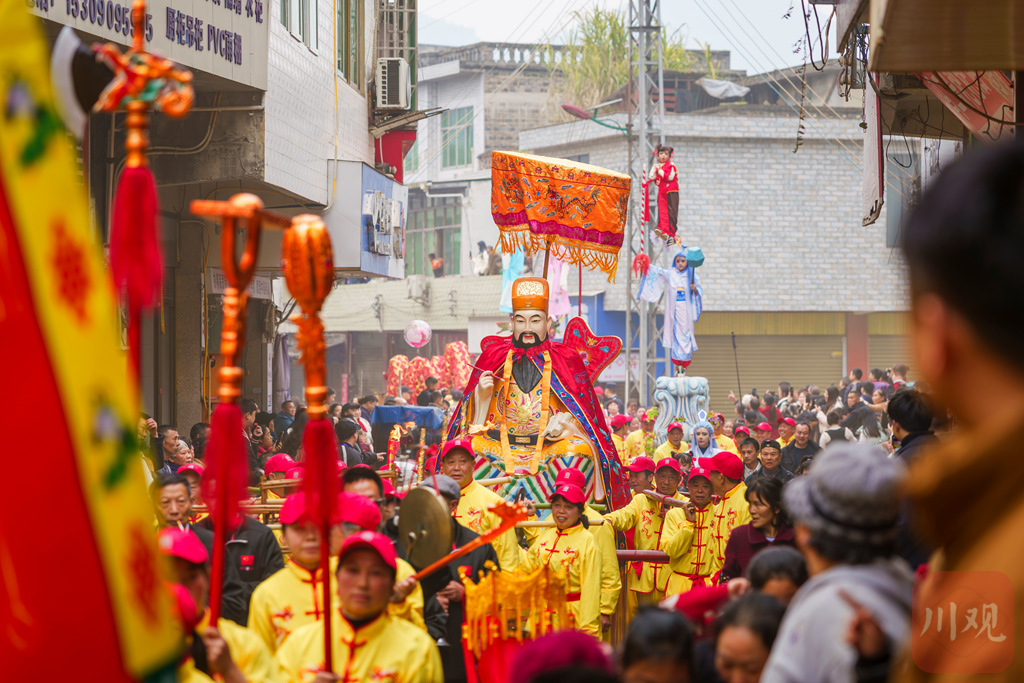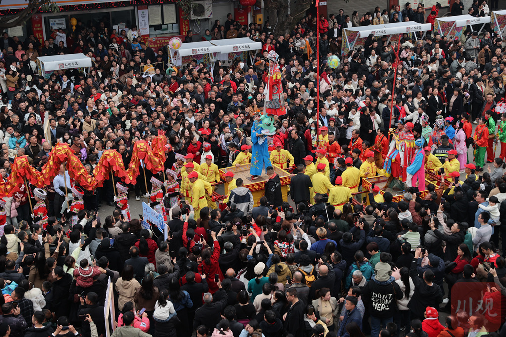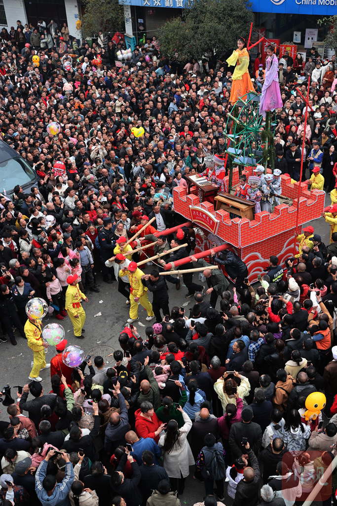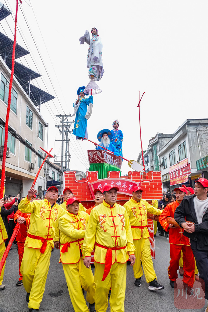 2025年3月1日,四川省宜宾市兴文县大坝苗族乡举办了以“文昌高照,非遗大坝”为主题的国家级非物质文化遗产“大坝高装”巡游活动。C视觉 袁义明 摄