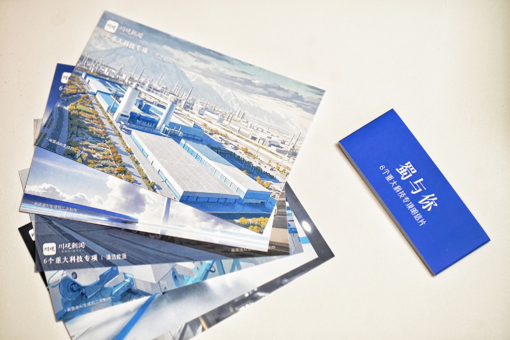 点赞科技创新奋斗者,AI绘制6个重大科技专项明信片。打开腰封,人工智能、航空航天、先进装备、生物制造、清洁能源、先进材料等6张“6个重大科技专项”主题明信片一一呈现。1个主题、6个专项,凝聚着无数四川人攻坚克难的决心。