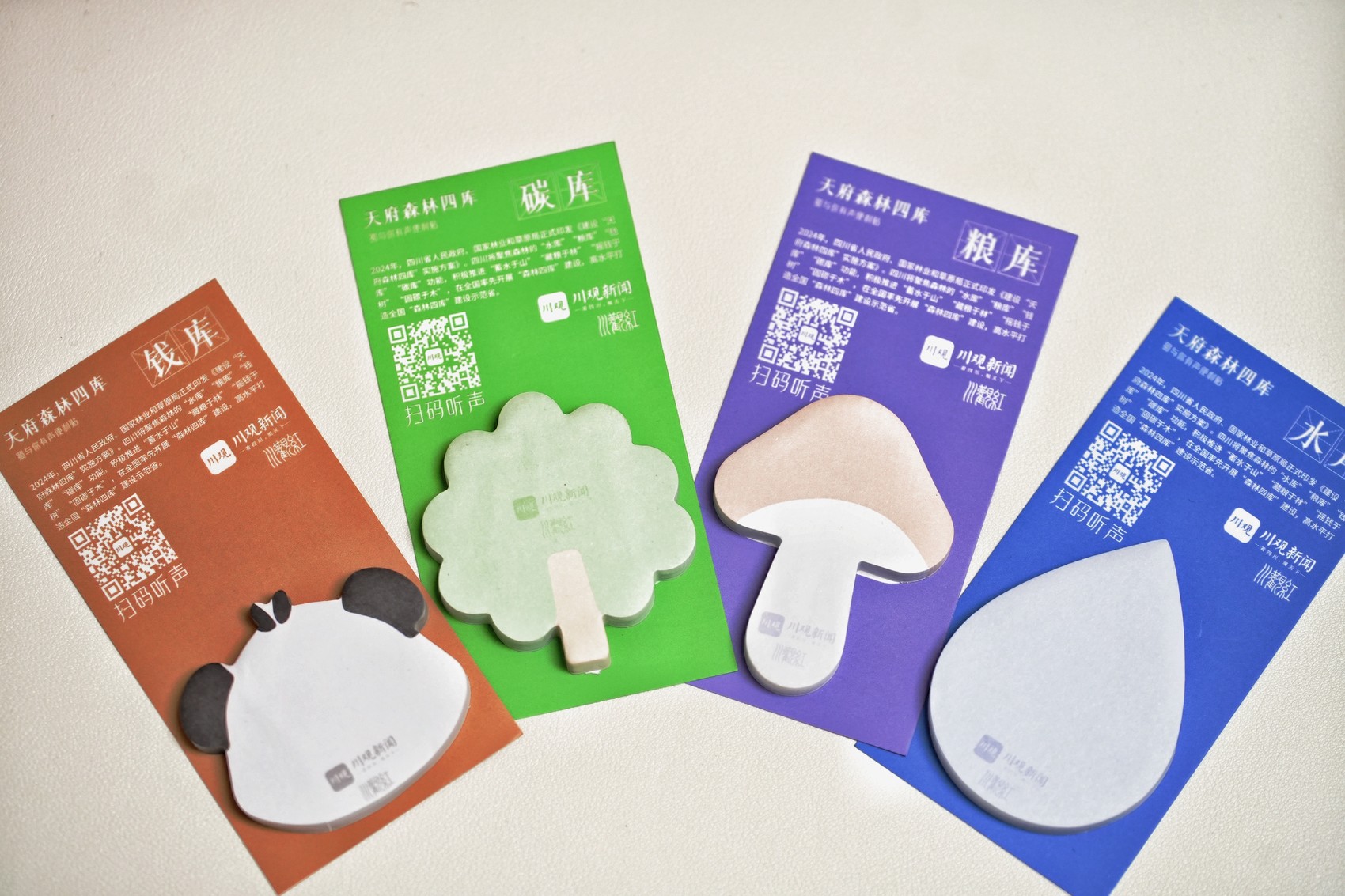 点赞乡村振兴奋斗者,一起听见“天府森林四库”的声音。积极推进“蓄水于山”“藏粮于林”“摇钱于树”“固碳于木”,2024年,四川在全国率先开展“森林四库”建设,高水平打造全国“森林四库”建设示范省。“天府森林四库”有声便利贴聚焦森林的“水库”“粮库”“钱库”“碳库”功能设计主题,并在背卡嵌入有声二维码,代表委员扫码即可听见森林的治愈之声,宛如一幅绿水青山的新画卷正徐徐展开。