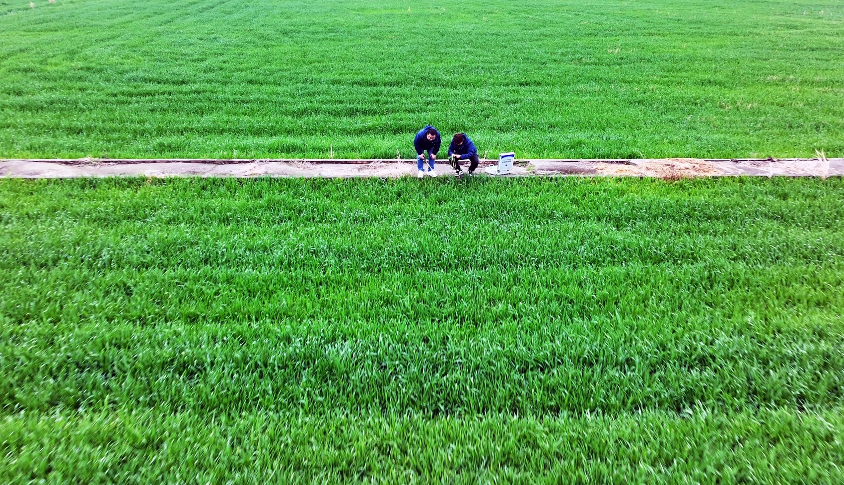 四川美丰农化服务人员在田间查看小麦长势。