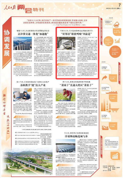 川渝两地紧密合作,共抓项目建设、政策协同、改革突破、平台搭建,不断提升发展能级。两地应牢固树立一体化发展理念,推动重点产业“建圈强链”,发展壮大优势主导产业,共育人工智能、低空经济等未来产业。