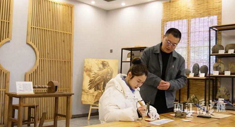 34岁的王全,是内江全市唯一的烙画项目的市级非遗代表性传承人,传承发扬烙画,是评选非遗代表性传承人最重要的考量。在这一点上,王全作出了贡献。