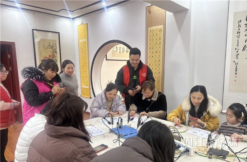 在王全的“蓝图”里,“汉安烙画”不仅创造出经济价值,还实现了可观的社会效益。这源于他坚持以展览馆为传承发扬“汉安烙画”的“主阵地”,定期为周边村镇的有意愿学习烙画技艺的农村留守妇女提供免费的课堂培训。学成后,王全又为妇女们提供就业机会,定期请她们进社区、进学校开展烙画培训,“根据路程远近,工资每天100元至200元不等,既照顾了家中老小,也贴补了家用,一举两得。”王全说,每年都有30多名农村妇女通过烙画,实现就近灵活就业。