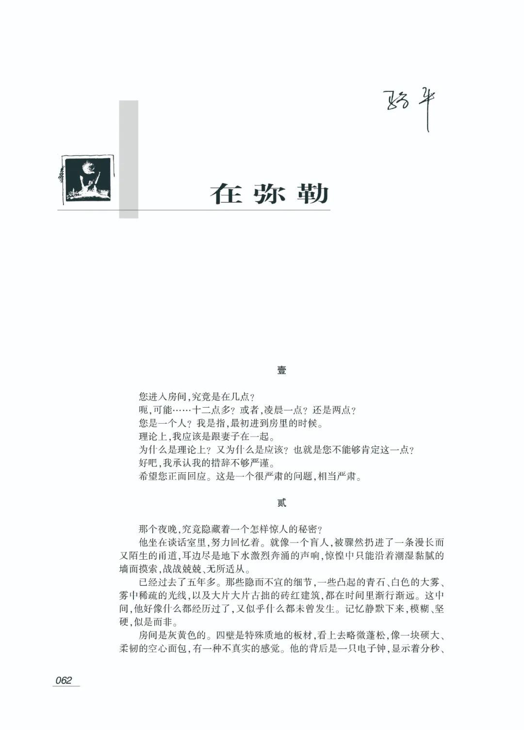 《在弥勒》是一个非常态的故事,不同于我过去通常会附着的职称、师生、博士点申报之类的宏大叙事,它并没有太过具象的感性经验。男主是一位学者,经历了一次慎重其事的调查。这是极其小众的体验。一封貌似严重却又无比荒谬的匿名信,作者是谁?动机是什么?目的何为?男主沉入茫茫回望,记忆的碎片和规则的厘清,像幽暗湿滑的水草一般,将他紧紧缠裹。