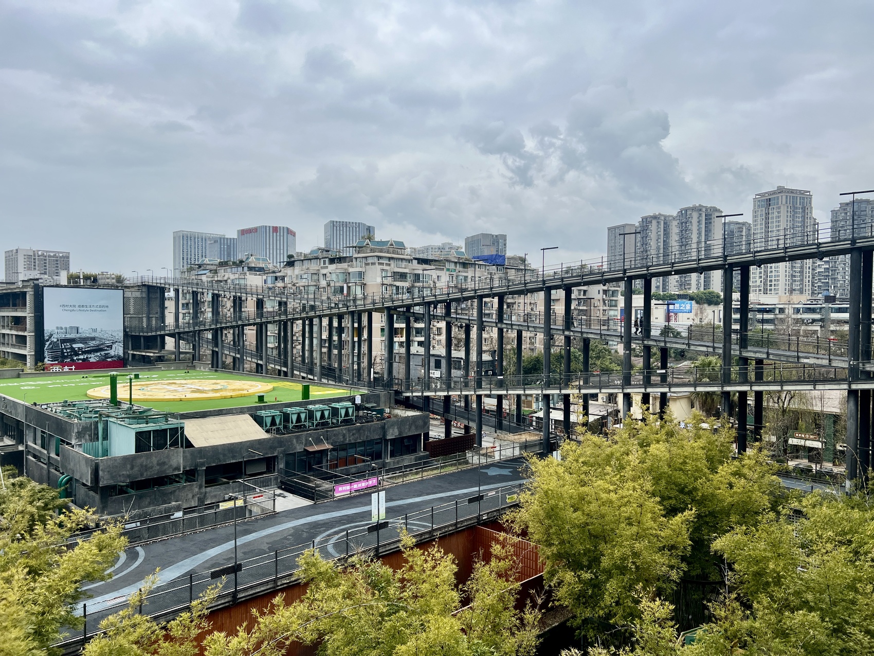 西村大院是一个具有商业、休闲等功能的城市综合体,建筑环绕街区沿边修建,围合出一个公园般的超大院落,成为一个外高内低的公共生活的“绿色盆地”,呼应了四川盆地的原风景。