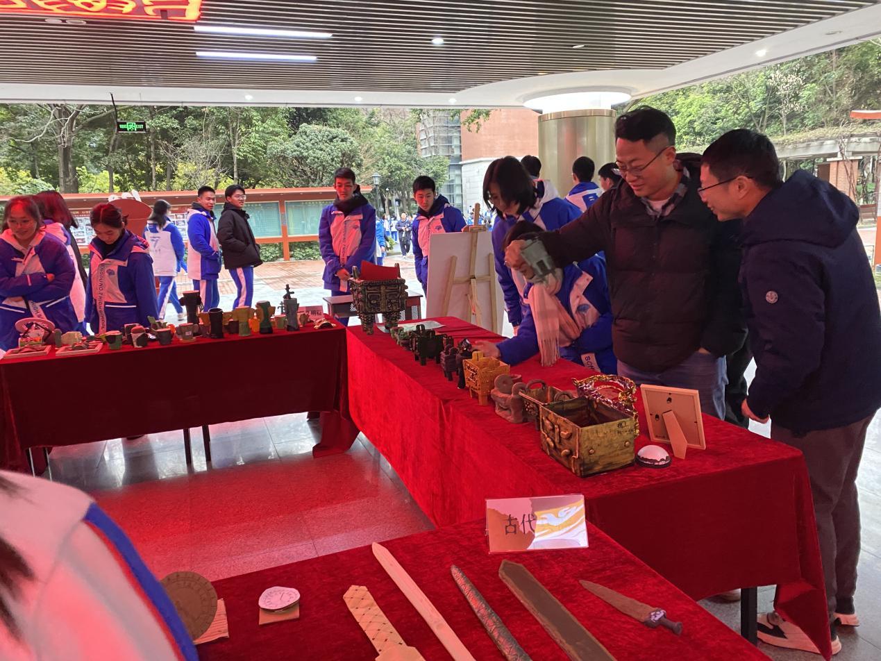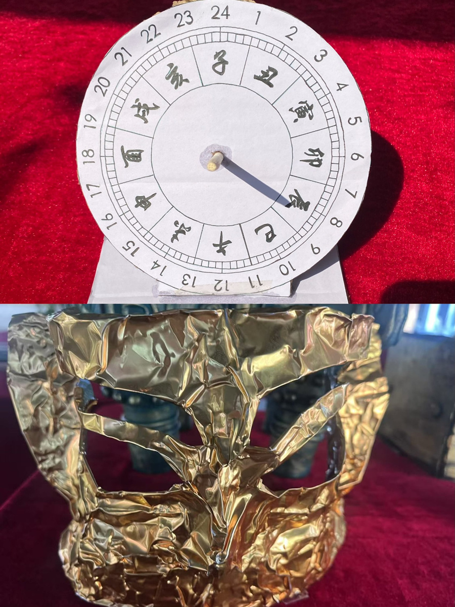 近日,成都七中(高新校区)的校园里举办一场别开生面的“文物”展览,从纸质版、泥塑版的三星堆青铜面具、后母戊鼎、日晷,到越王勾践剑、兵马俑、古代货币等,150余件手工复刻“文物”集体亮相校园。