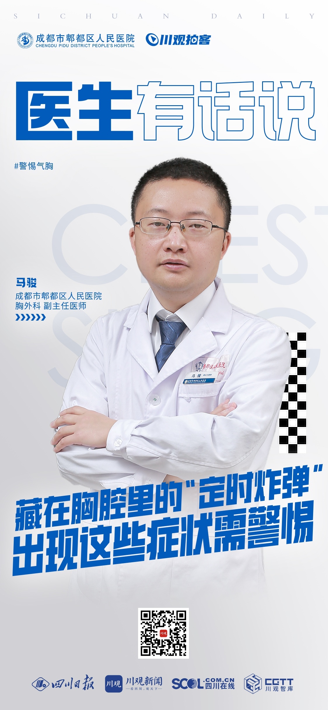 本期栏目,来自成都市郫都区人民医院胸外科的副主任医师马骏,就跟大家说一说什么是气胸?引发自发性气胸的原因、易发人群以及气胸的典型症状等问题。