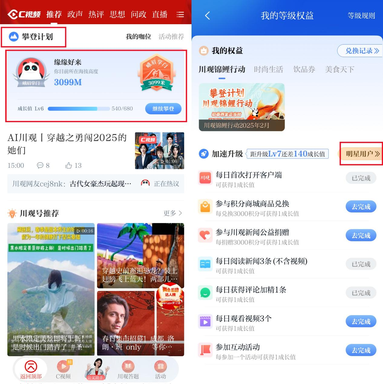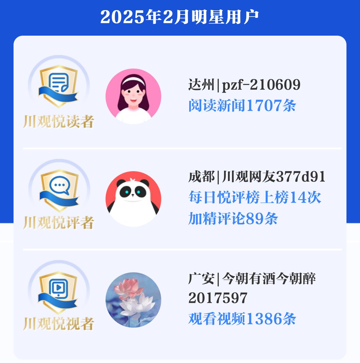 恭喜2025年2月川观明星用户