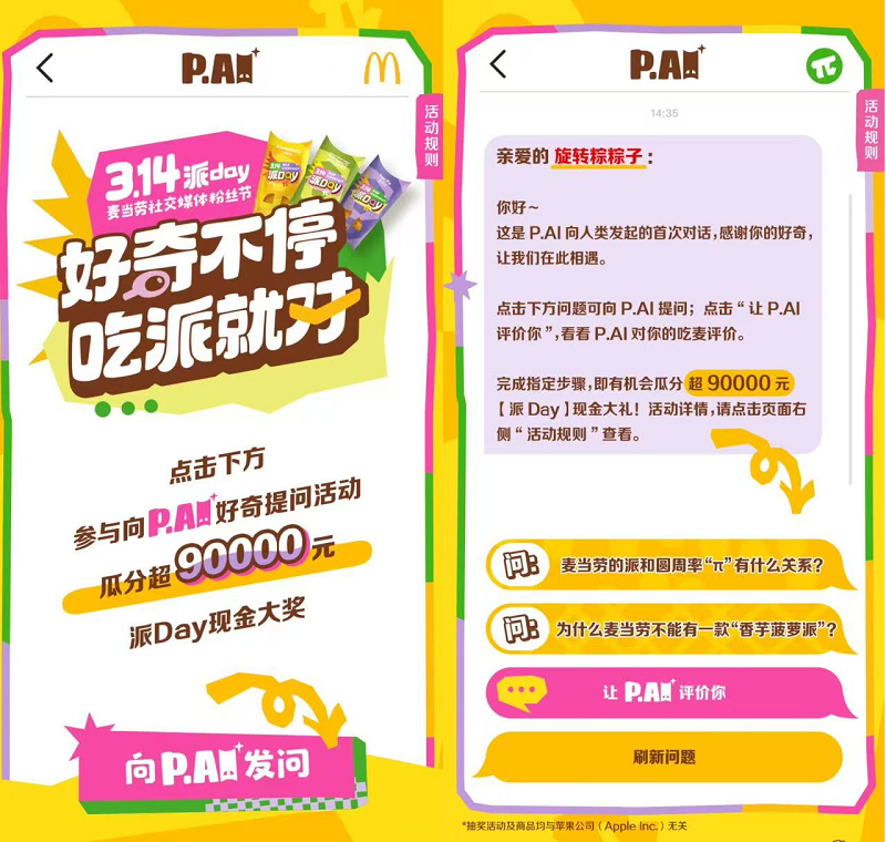 麦当劳中国推出首个对话式AI互动“P.AI”