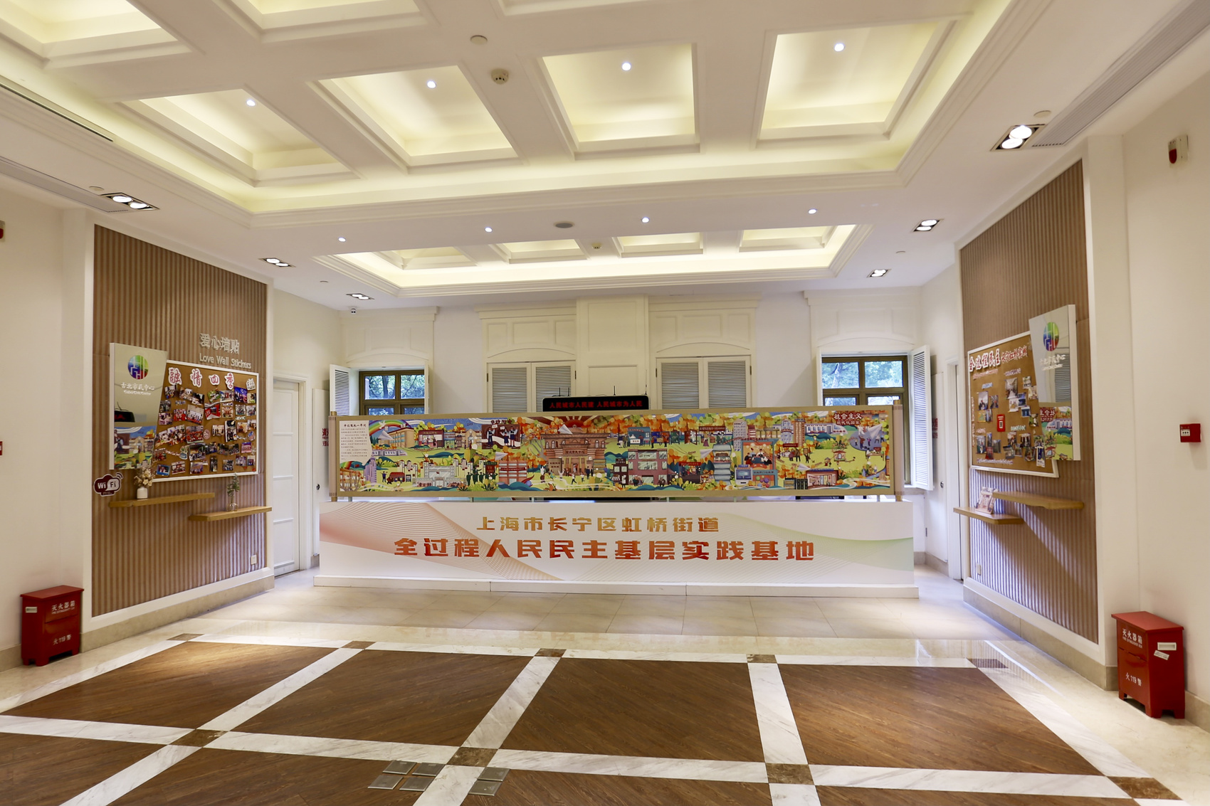 这是上海市长宁区虹桥街道古北市民中心内的漫画墙和照片墙(2021年7月24日摄)。新华社记者 耿馨宁 摄