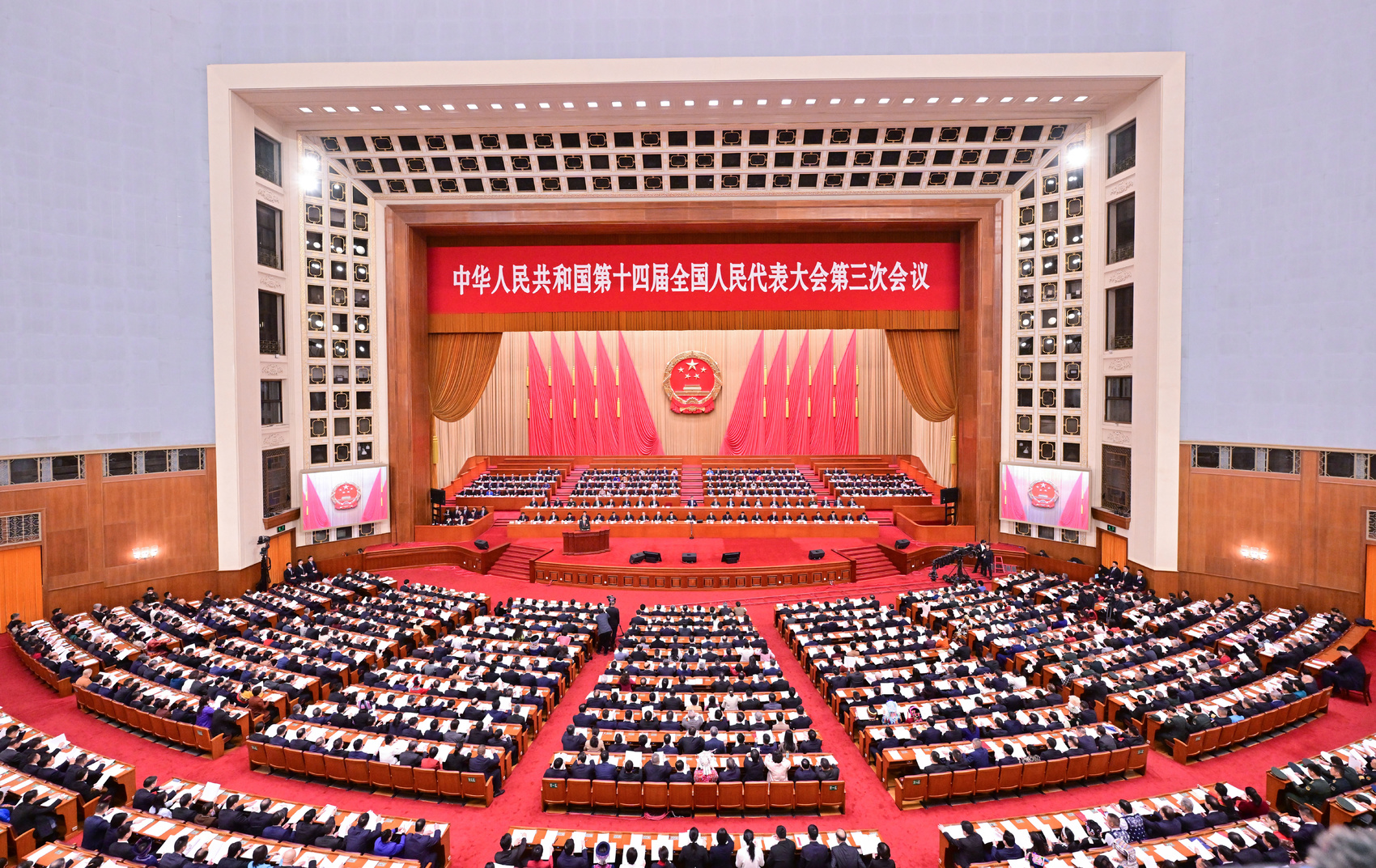 3月8日,十四届全国人大三次会议在北京人民大会堂举行第二次全体会议。新华社记者 岳月伟 摄