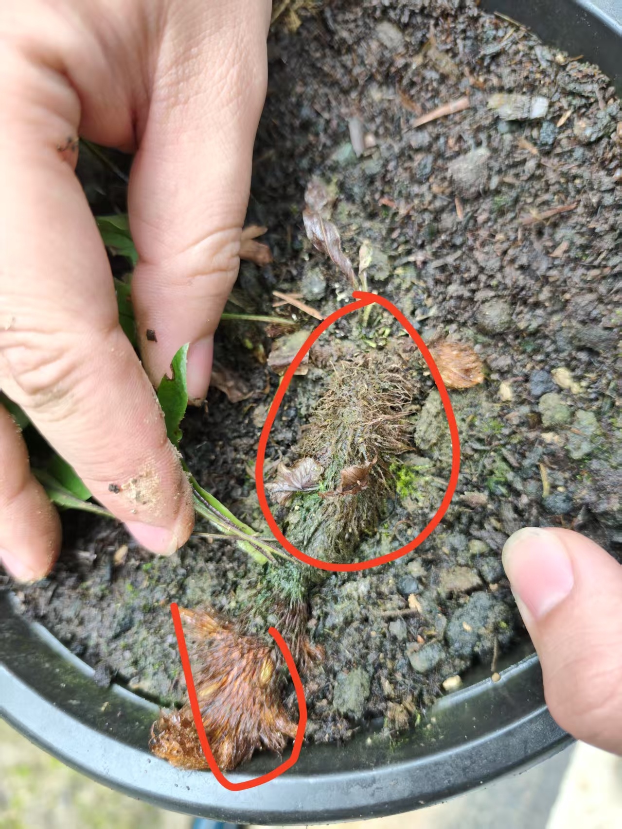 画红圈的为骨碎补的块状茎。