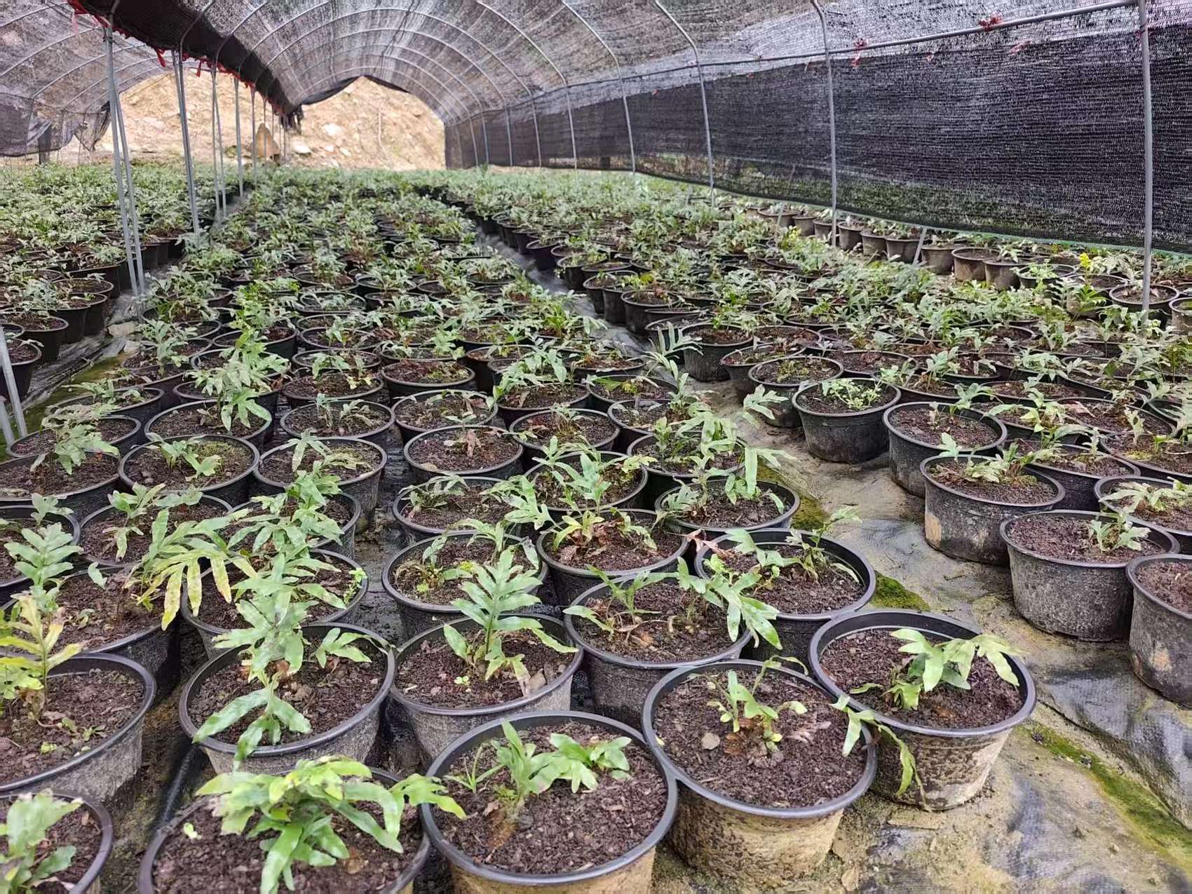 3月11日,在挹峨村的一片片林下,一盆盆骨碎补在遮阳网的庇护下,幼小的身躯伸张着蕨类一般的碧绿嫩叶茁壮地生长。业主喻正忠从去年春季开始大胆尝试,在这里示范种植了约27亩,期待着投产后能获得较高回报。