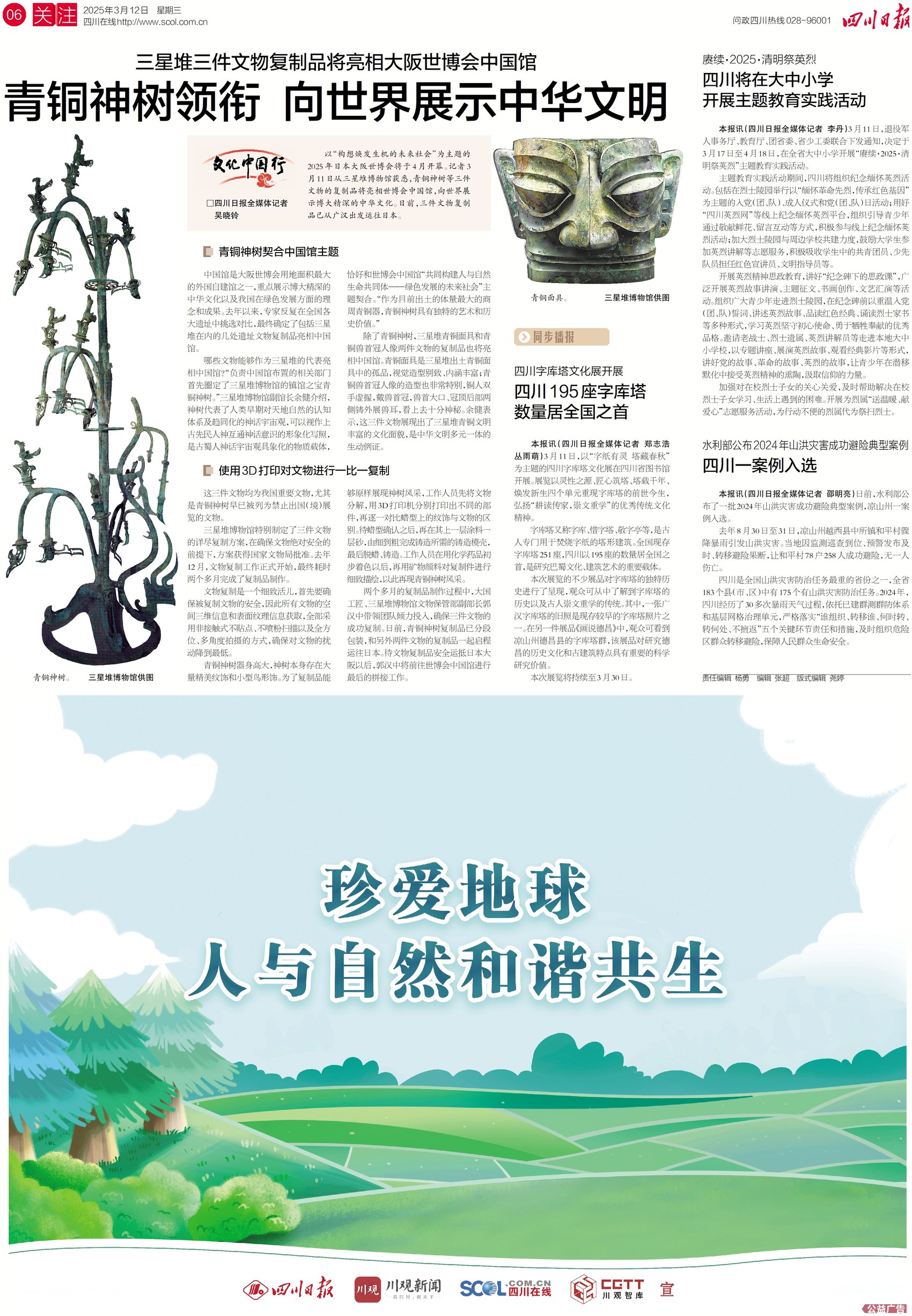 作为三星堆博物馆的镇馆之宝,青铜神树等三件文物复制品将亮相2025年日本大阪世博会中国馆。这三件文物均为我国的国宝级文物,尤其是青铜神树早已成为禁止出国(境)展览的文物,为何会亮相本次世博会?今日六版,为你揭秘这三件文物亮相世博会中国馆的原因以及相关安保措施。
