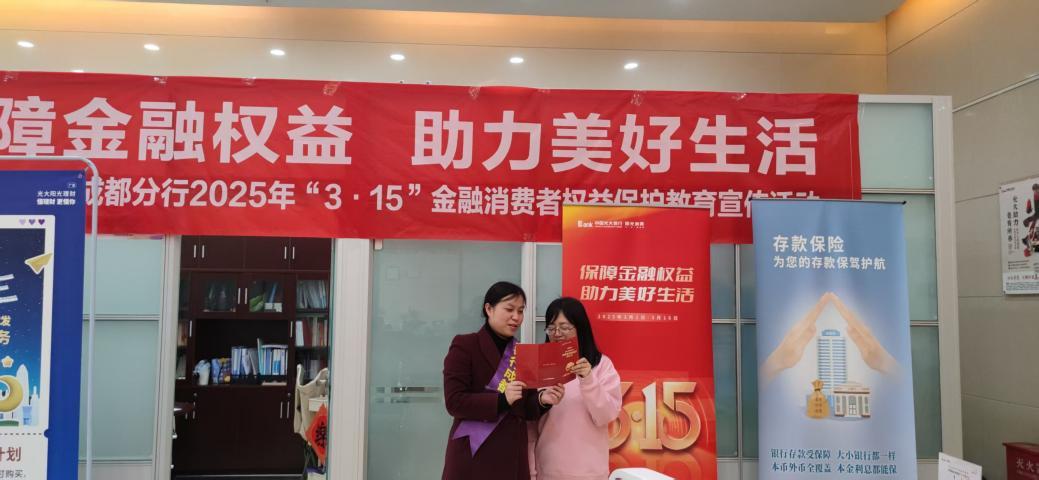 为切实提升消费者金融素养,有效防范化解金融风险,光大银行成都分行践行监管及总行工作要求,充分利用“网点厅堂宣传”和“线上渠道宣传”两大主阵地,精心策划“3·15”金融知识宣传教育活动,并于3月1日全面启动。
