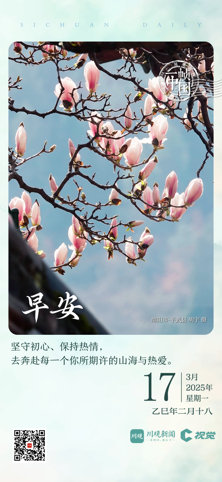 今天的《一帧中国》,川观新闻带你来到绵阳市平武县报恩寺,探访“深山故宫”,邂逅春日玉兰。