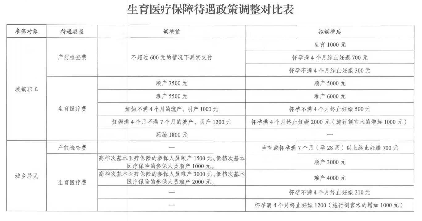 针对城乡居民,将生育或怀孕满7个月(孕28周)以上终止妊娠的,纳入到生育医疗保障待遇范围内,享受定额补助700元。生育医疗保险则不再区分参保人员购买城乡居民医疗保险的档次,均按照生育方式进行报销,顺产的限额补助为3000元,难产(含剖宫产)的限额补助为4000元。