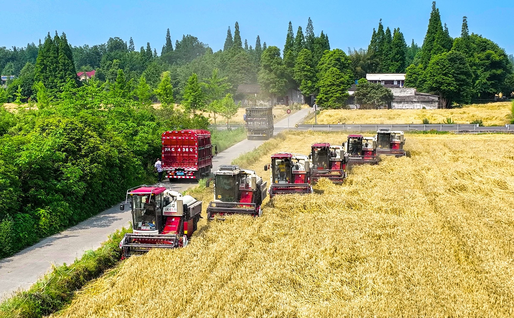 崇州杨柳合作社组织小麦收割。受访者供图
