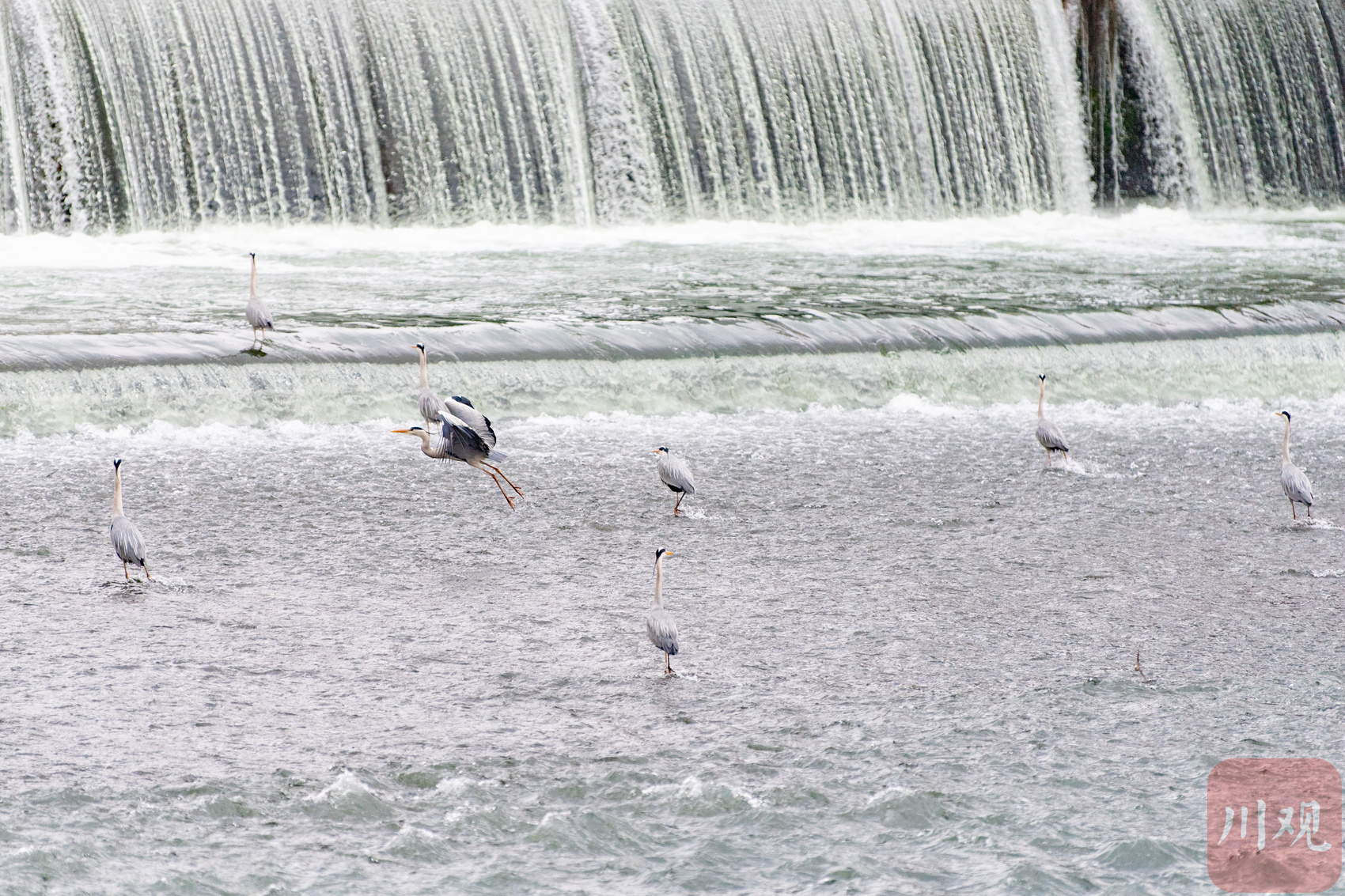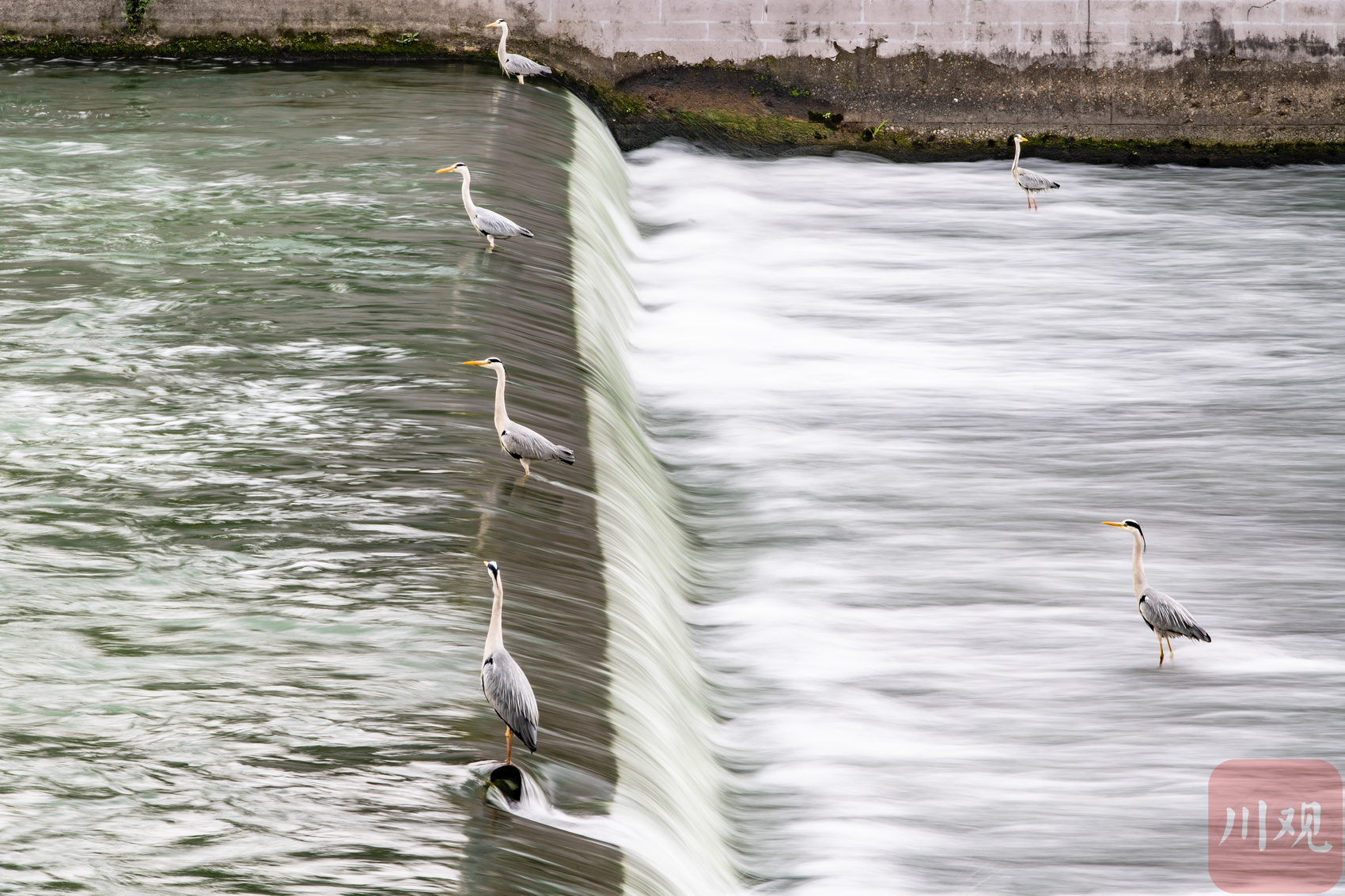 成都市观鸟协会会长沈尤表示,苍鹭是成都地区比较常见的水鸟。上述现象是苍鹭的捕食行为。苍鹭经常出现在九眼桥下的滚水坝处,因该地水浅,加之部分鱼类有着“回游”的习性,所以有了苍鹭聚集捕食。