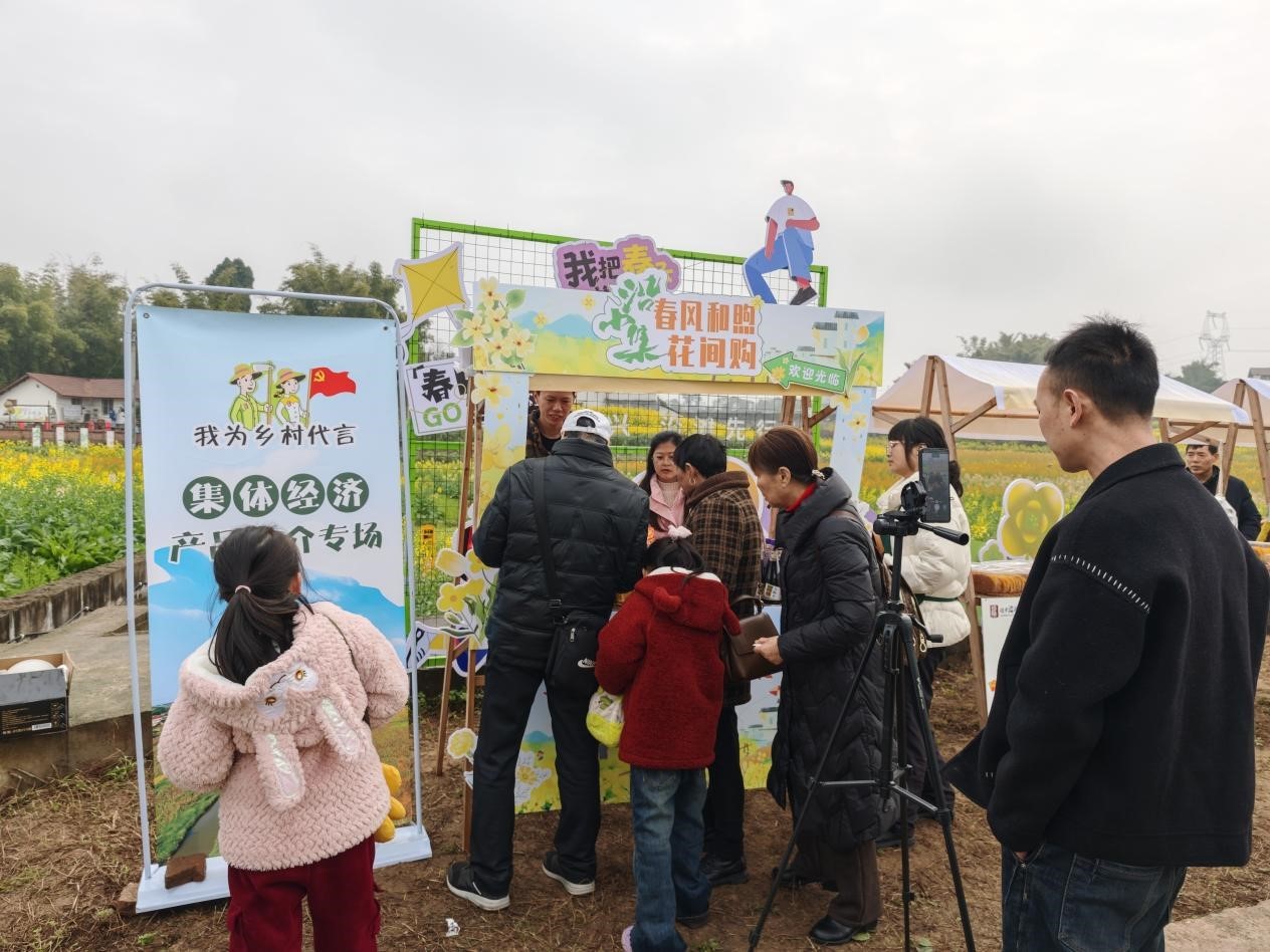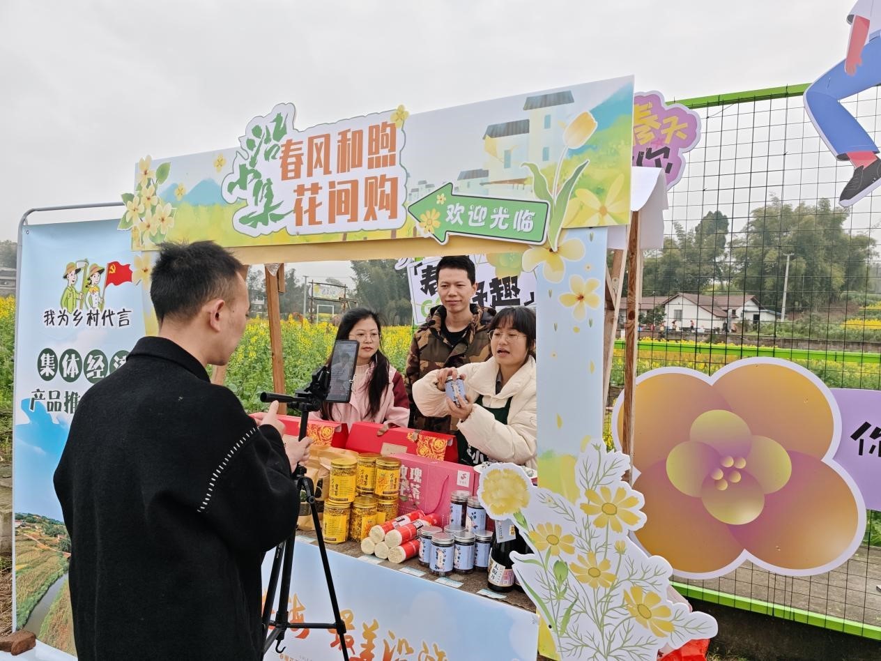 观景点位春意盎然、花团锦簇,活动现场人潮涌动、热闹非凡,来自沿滩镇、永安镇的驻村第一书记及工作队员、“兴村特岗”人员侯志强、付世秀、蔡冬、王欣怡等人巧借“花势”,化身产品代言人开展助农带货直播及现场销售,对着镜头热情洋溢地推介“沿”味产品,“沿小集”烘焙系列礼盒、永安青花椒、太源井晒醋等产品吸引众多游客围观点赞和竞相购买,进一步擦亮“沿滩品牌”。