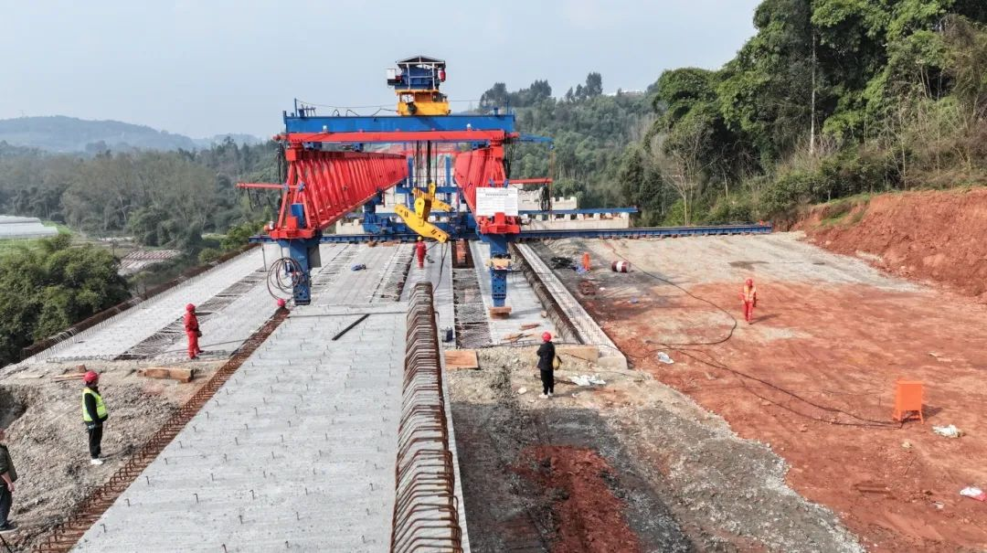 3月13日,天眉乐高速公路项目5标段施工现场,工程机械来回穿梭,预制梁场机器运转不息,建设者们正紧锣密鼓地进行梁板浇筑、路基土石方开挖等工序,奋力刷新项目“进度条”。