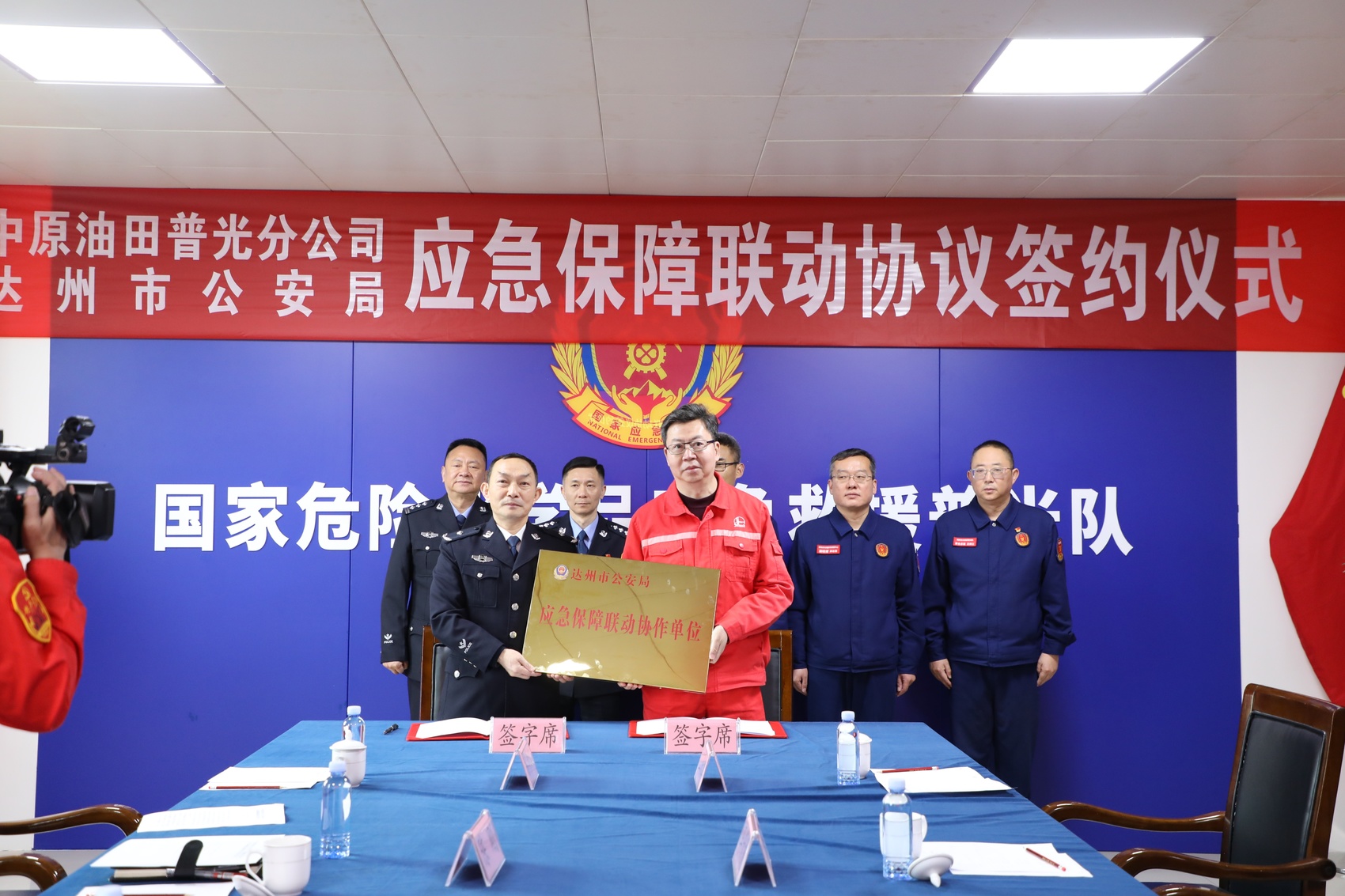 3月13日,中原油田普光分公司和达州市公安局在普光应急救援中心签订应急保障联动协议 杨艳青 摄