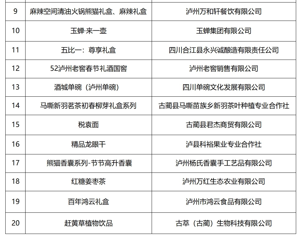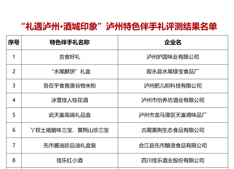 附:“礼遇泸州·酒城印象”泸州特色伴手礼评测结果名单
