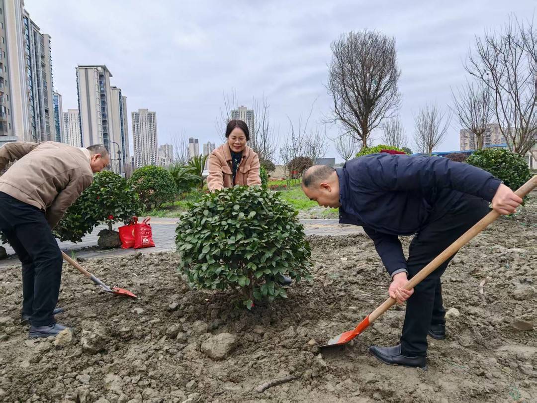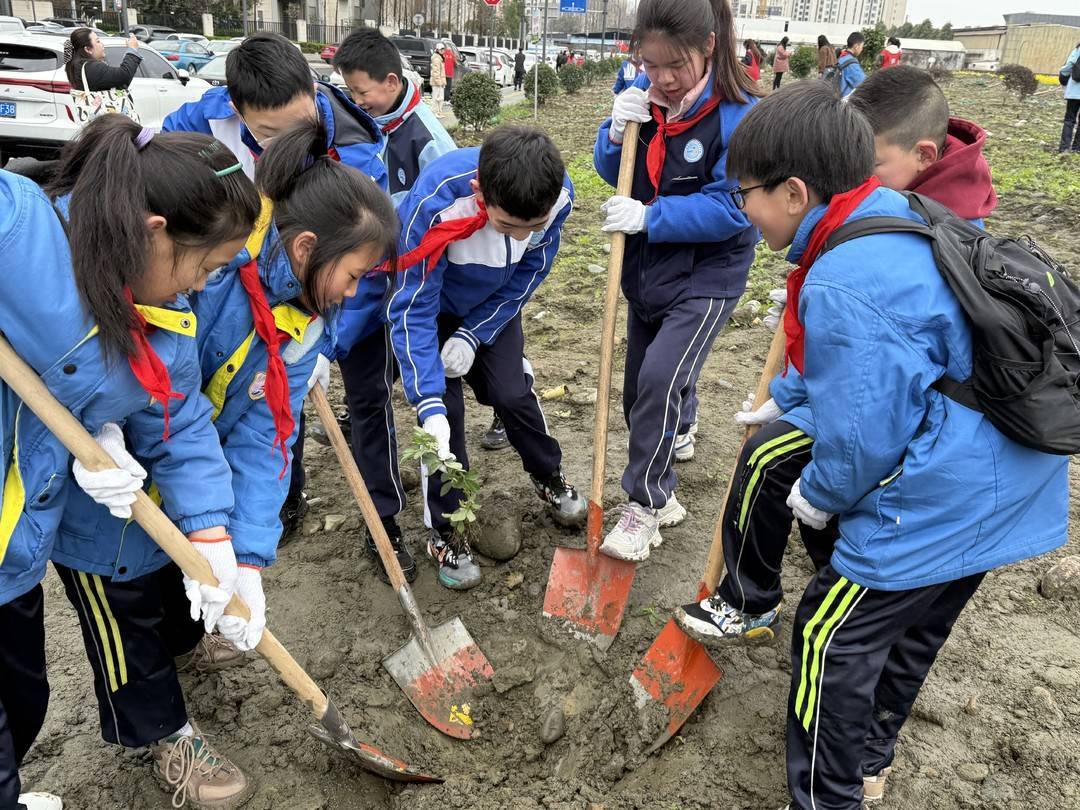 “这棵山茶树是我们一起种的,现在我们差不多高,以后我们每周都来浇水,看谁长得更快!”“老师快看!我们的这棵海棠树站得笔直!”随着一株株嫩绿树苗迎风舒展,附属小学的孩子们兴奋地和自己的小树苗合影留念,稚嫩的脸庞沾着泥土却笑意盈盈。活动现场设置了“绿植认养区”,市民可为亲手栽种的树木命名并挂牌,后续通过社区组织的“树木成长日记”活动定期参与养护。