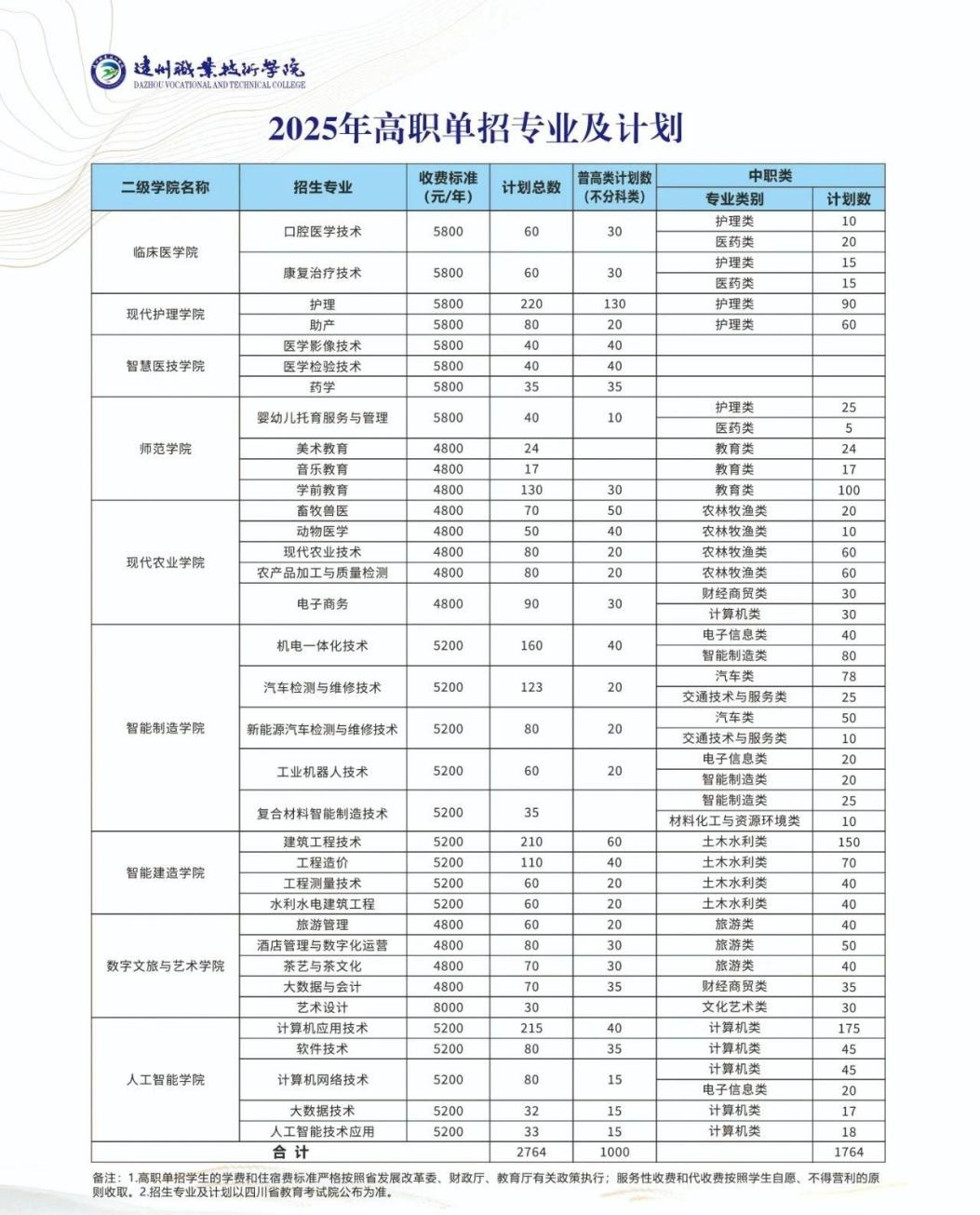 四川省2025年高职单招考试将于3月22日举行。近日,位于四川省达州市的达州职业技术学院发布了招生简章。今年,该校计划通过高职单招录取2764人。具体内容如下。