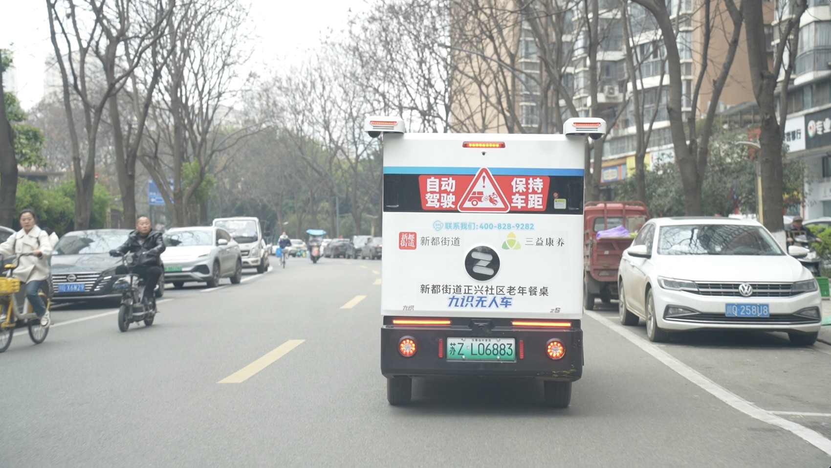 3月18日,成都市新都区“蓉颐助餐”无人送餐车专线开通,一辆辆灵动的无人送餐车化身传递幸福的“暖心使者”,把饱含家的温度与烟火气息的热乎饭菜,准时送到长者的餐桌。