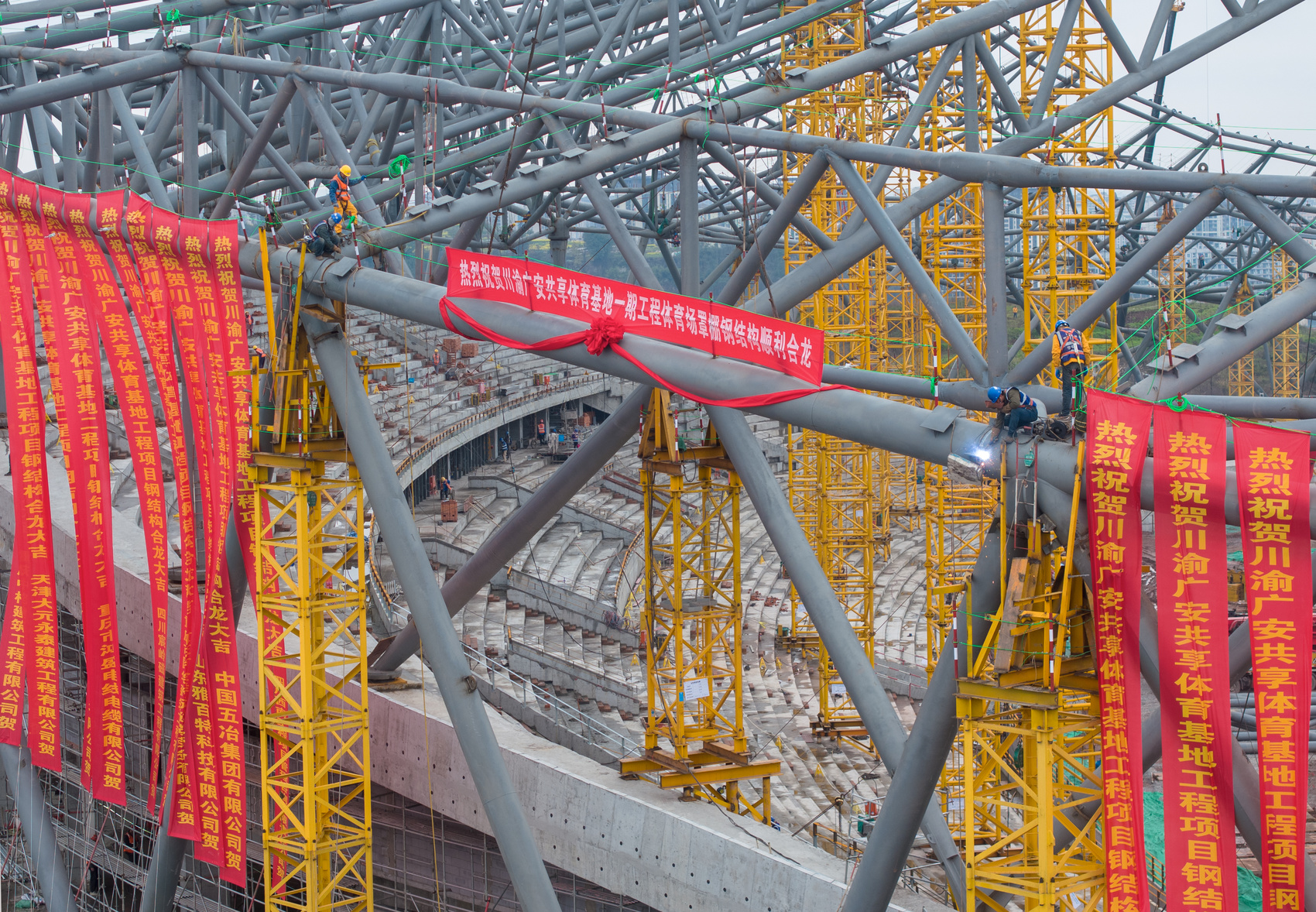 川渝广安共享体育基地体育场罩棚钢结构顺利合龙。(张国盛 摄)