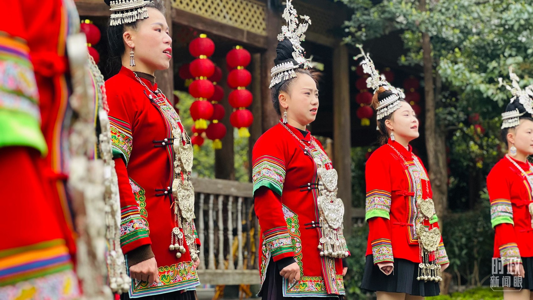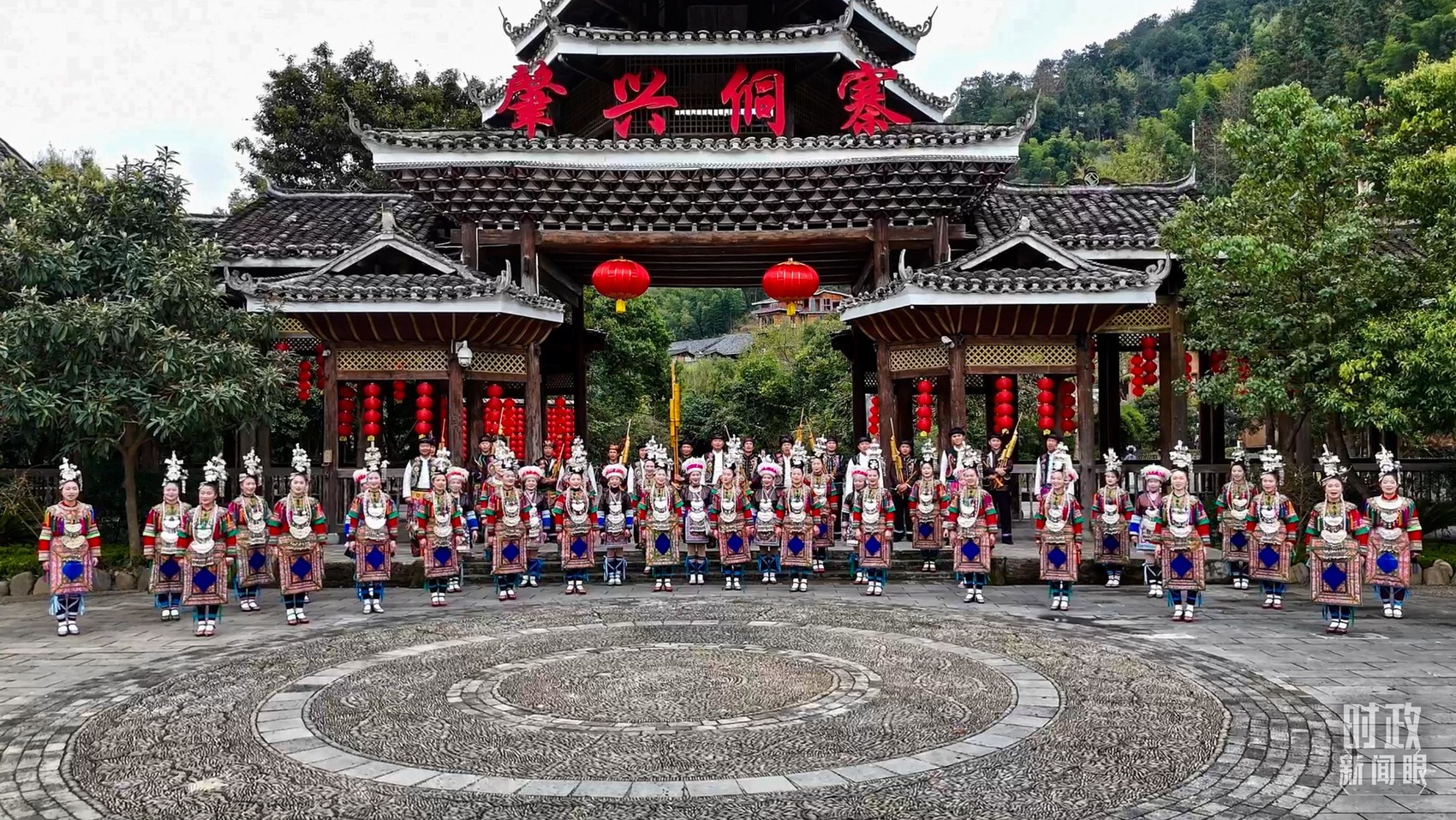 △寨门处,乡亲们身着传统服饰,唱起侗族大歌,欢迎远方的来客。(总台央视记者范凯拍摄)
