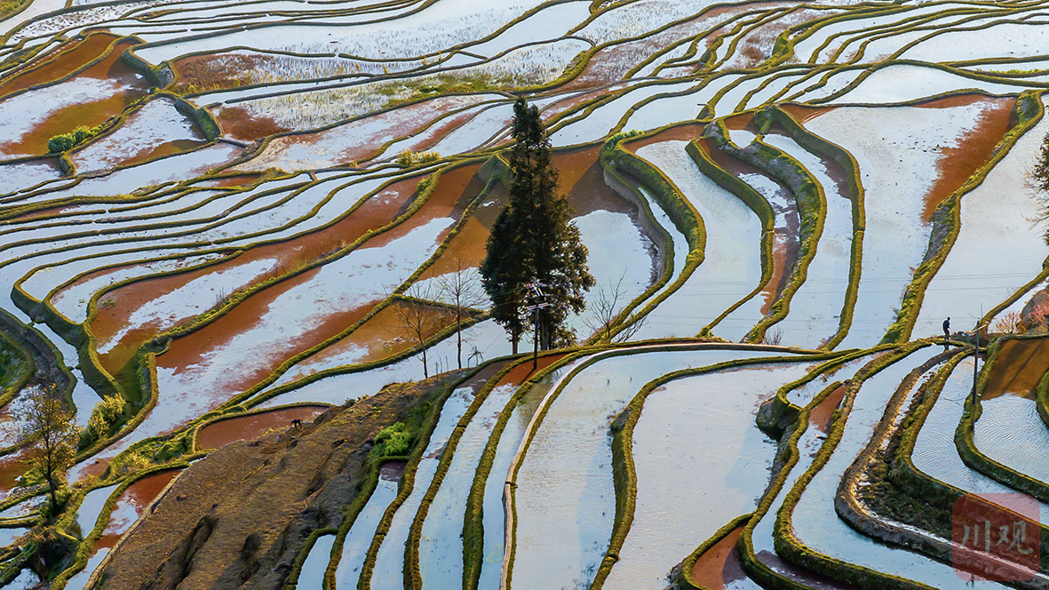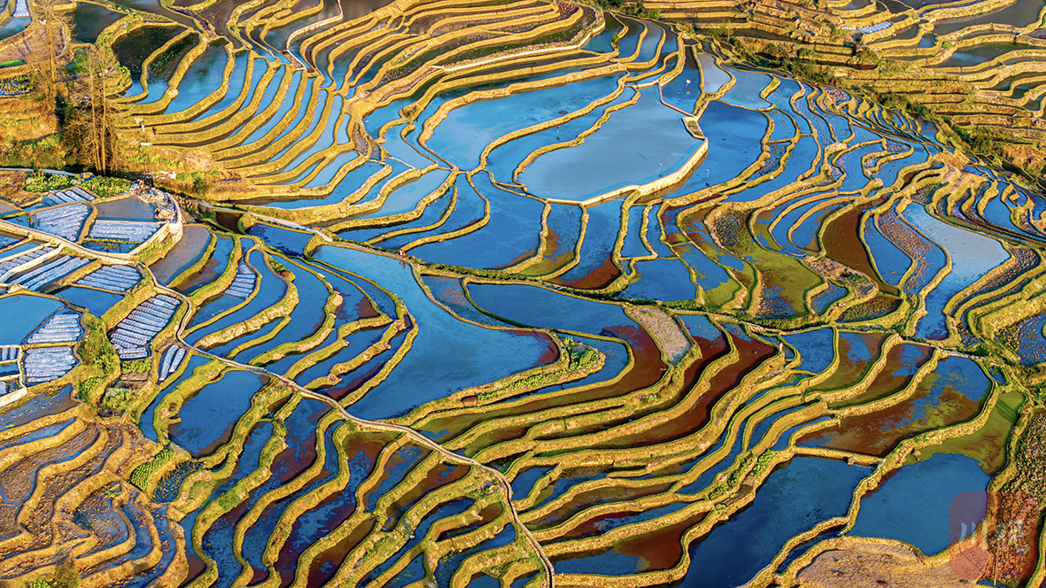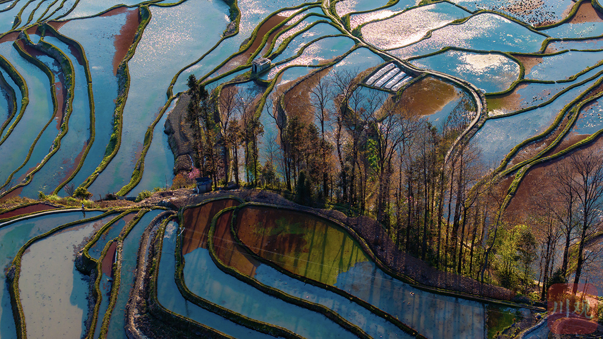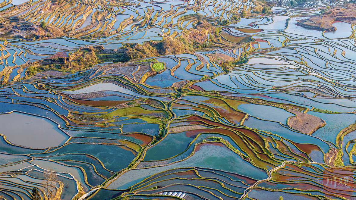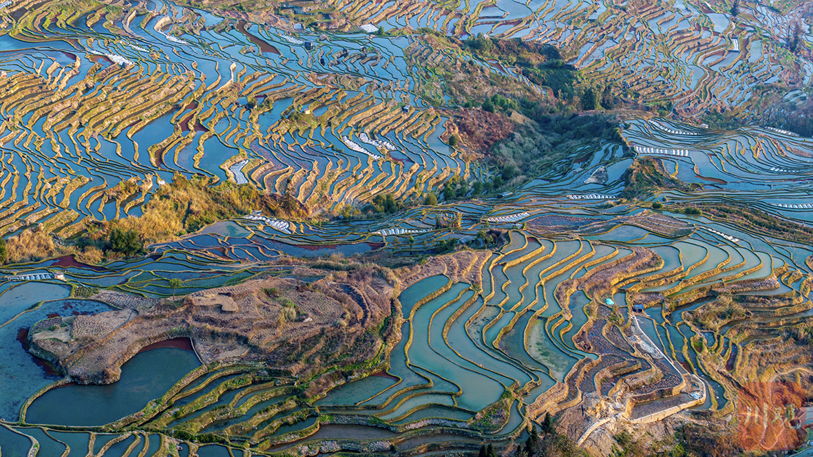 世界遗产红河哈尼梯田文化景观被称为农耕文明的“活化石”,哈尼梯田遵循“冬春注水养田”的传统。3月,远眺梯田既有波光粼粼的“水镜”,又可见田间备耕的农人,这个“水镜季”是摄影人拍摄梯田大片不可错过的创作窗口。