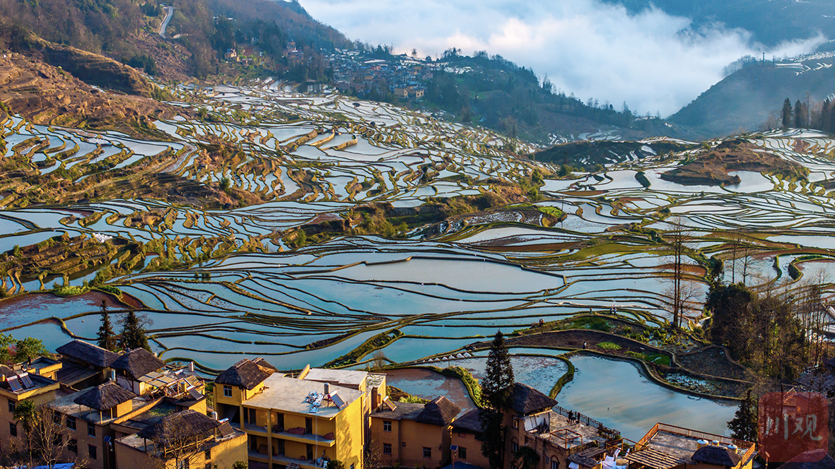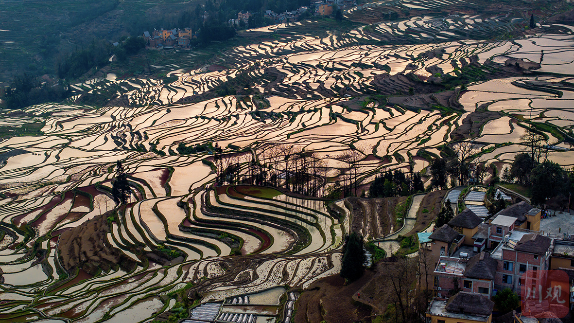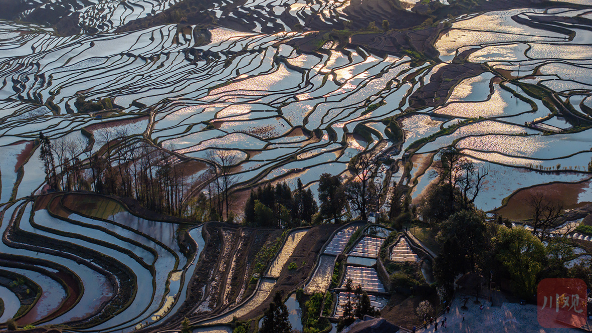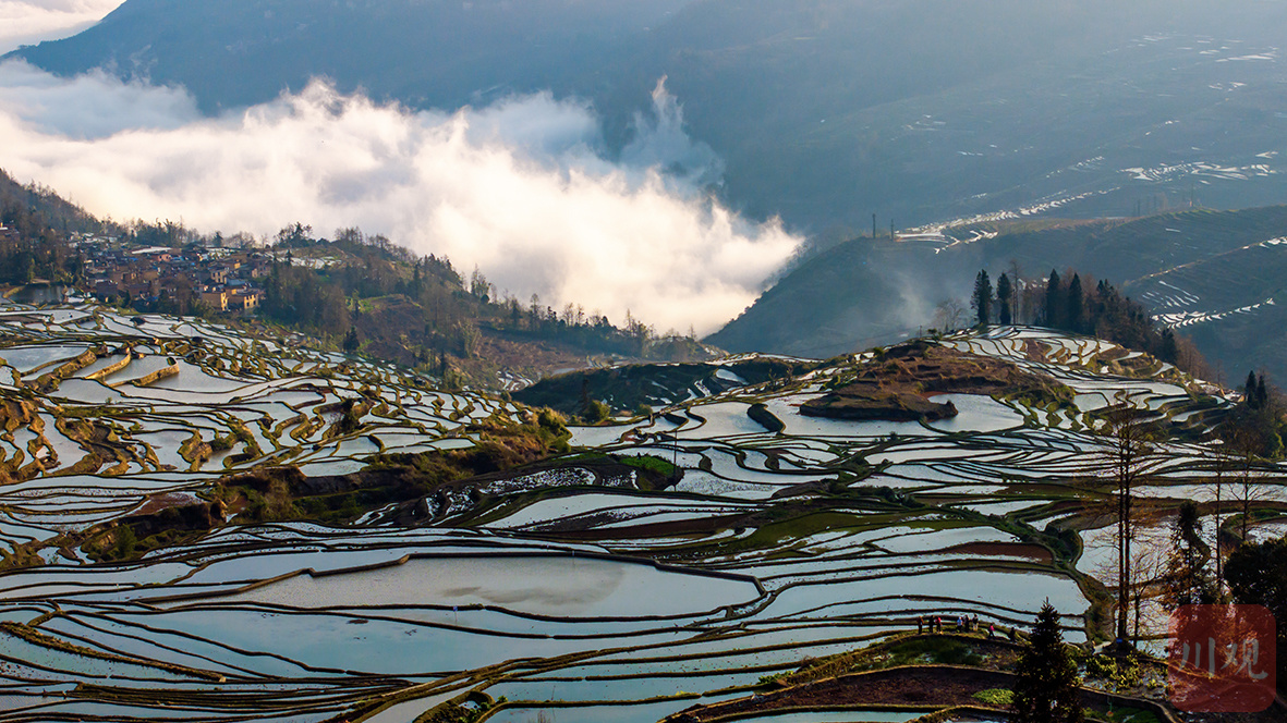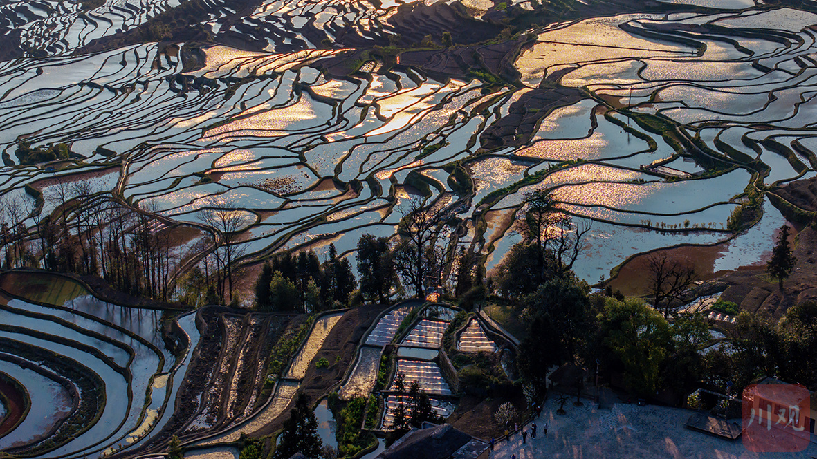 世界遗产红河哈尼梯田文化景观被称为农耕文明的“活化石”,哈尼梯田遵循“冬春注水养田”的传统。3月,远眺梯田既有波光粼粼的“水镜”,又可见田间备耕的农人,这个“水镜季”是摄影人拍摄梯田大片不可错过的创作窗口。